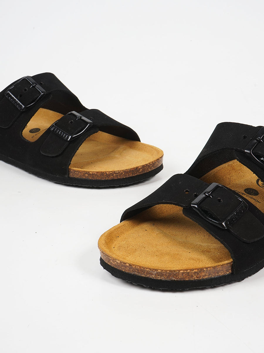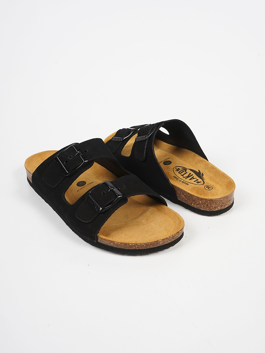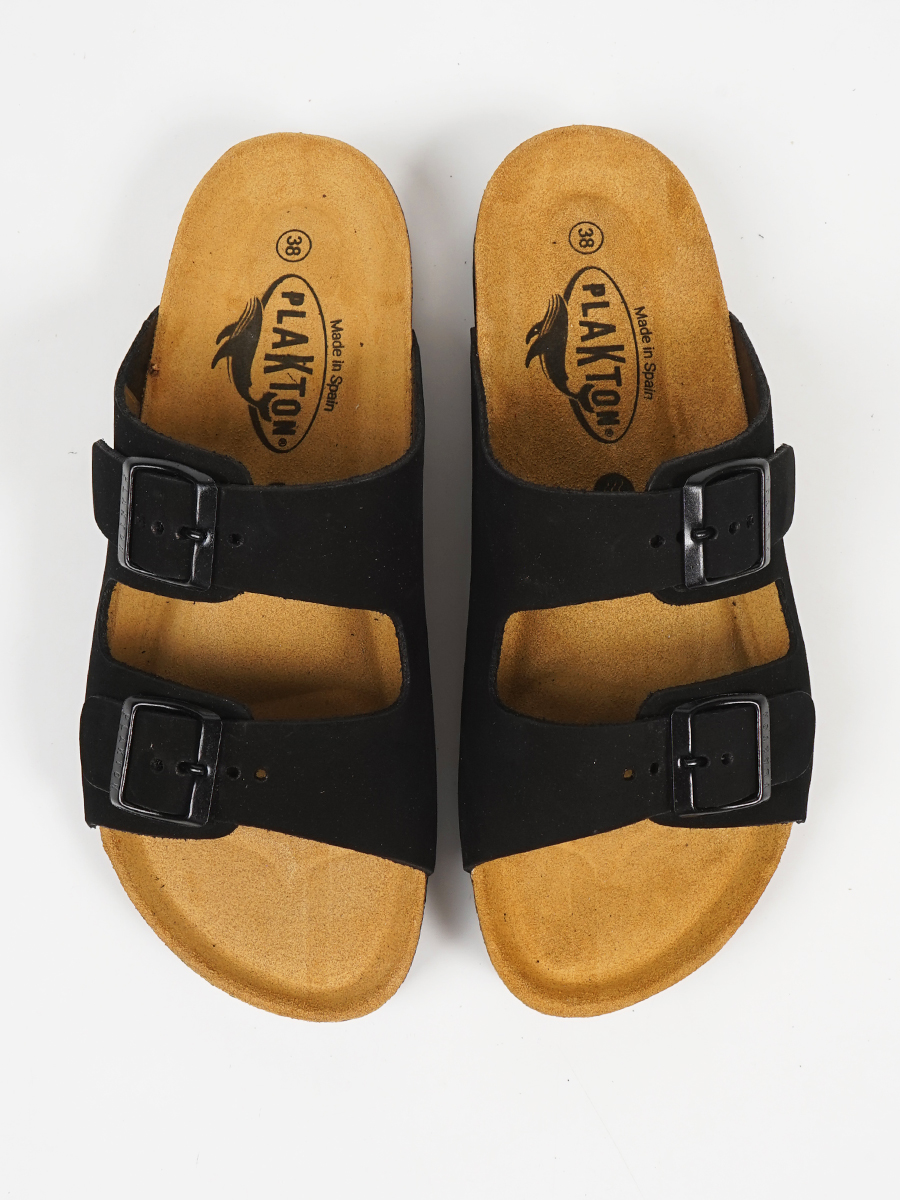 Αναβαθμίστε το καλοκαιρινό σας στυλ με τα γυναικεία ανατομικά σανδάλια Plakton 180010. Αυτά τα εμβληματικά δερμάτινα slides κατασκευάζονται στην Ισπανία από κορυφαίας ποιότητας δέρμα nubuck, προσφέροντας ανθεκτικότητα και κομψότητα. Διαθέτουν την πρωτοποριακή τεχνολογία Memory Cushion, έναν ανατομικό πάτο που προσαρμόζεται στο σχήμα του πέλματος για μέγιστη άνεση και υποστήριξη της καμάρας. Η σόλα από φυσικό φελλό εξασφαλίζει ανάλαφρο πάτημα και αντικραδασμική προστασία, ενώ οι δύο ρυθμιζόμενες αγκράφες εγγυώνται σταθερότητα σε κάθε βήμα. Ιδανικά για καθημερινή χρήση, τα μαύρα ανατομικά Plakton συνδυάζουν την εργονομία με τη διαχρονική μόδα.