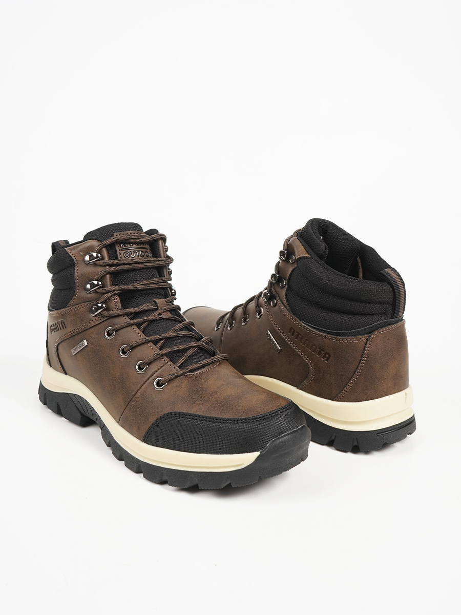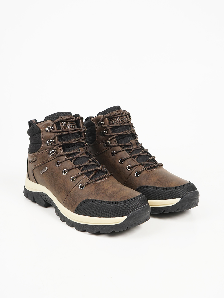 Ανδρικό μποτάκι με κορδόνια και συνδυασμό υλικών. Διαθέτει μαλακή σόλα για άνετο βάδισμα .