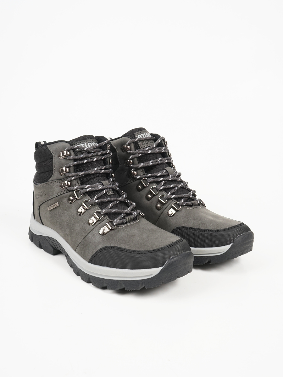 Ανδρικό μποτάκι με κορδόνια και συνδυασμό υλικών. Διαθέτει μαλακή σόλα για άνετο βάδισμα .
