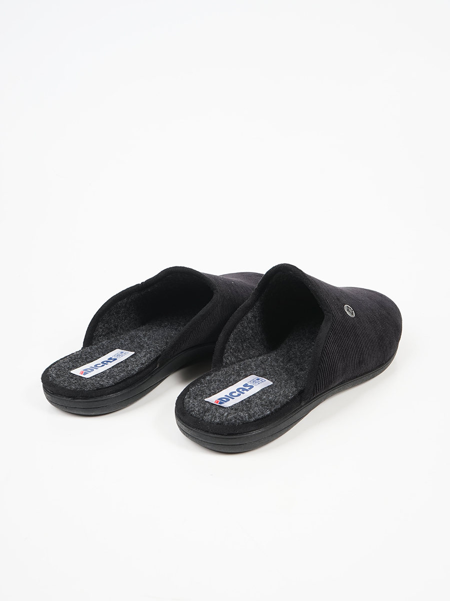 Ανδρική ανατομική παντόφλα, ισπανικής κατασκευής, της εταιρείας Dicas, κατασκευασμένη από εξαιρετικά απαλό ύφασμα. Διαθέτει εύκαμπτη και αντιολισθητική σόλα για σταθερό και άνετο περπάτημα.