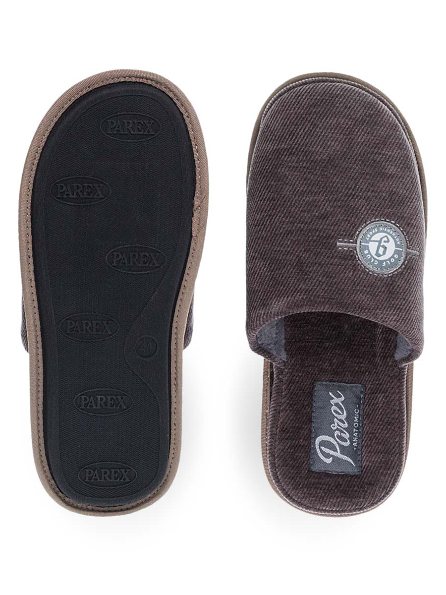 Ανδρικές παντόφλες σπιτιού από την εταιρεία Parex. Με υφασμάτινη εσωτερική επένδυση και ανατομικές προδιαγραφές. Μαλακός εσωτερικός πάτος για να διατηρεί ξεκούραστα τα πέλματα σας.