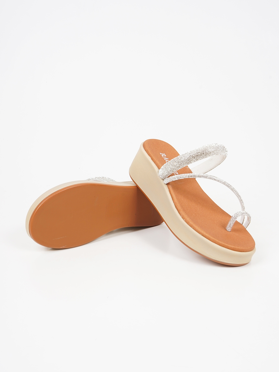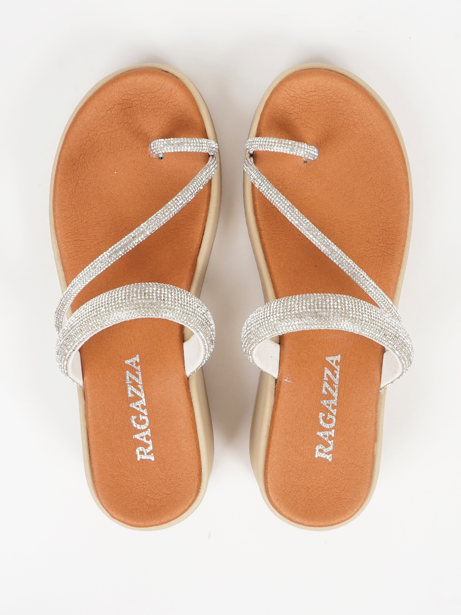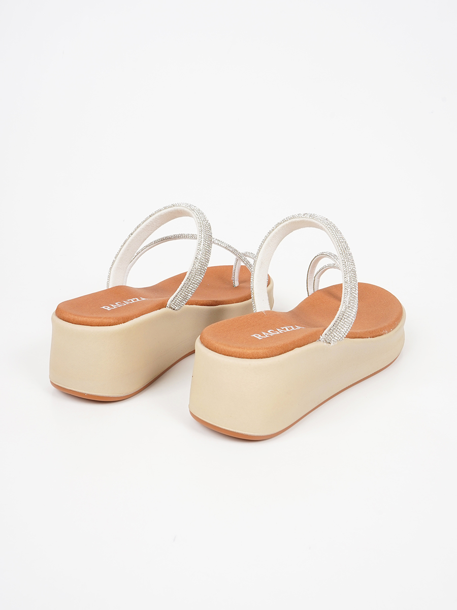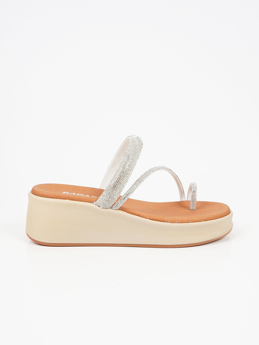 Γυναικείο flatform ελληνικής κατασκευής,εξ΄ολοκλήρου από γνήσιο δέρμα,της εταιρείας Ragazza,με strass στα λουράκια.