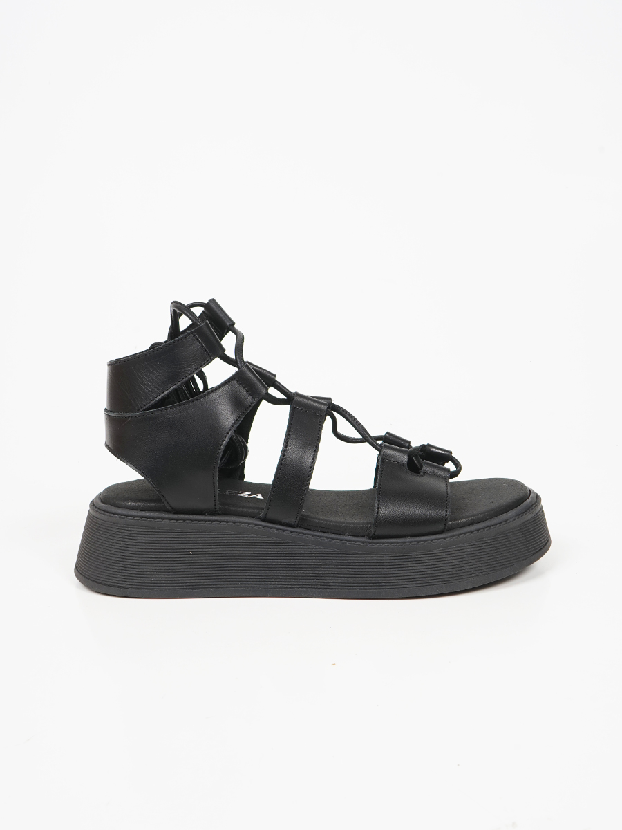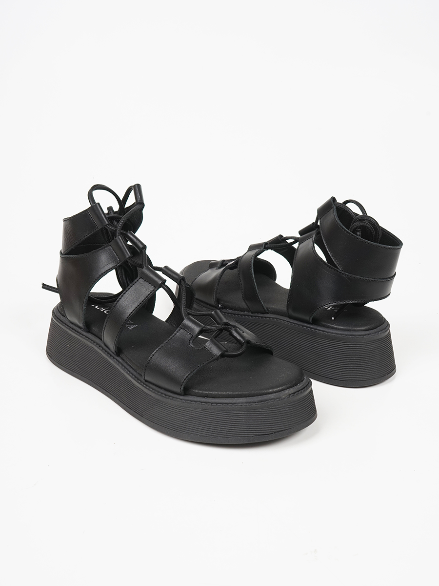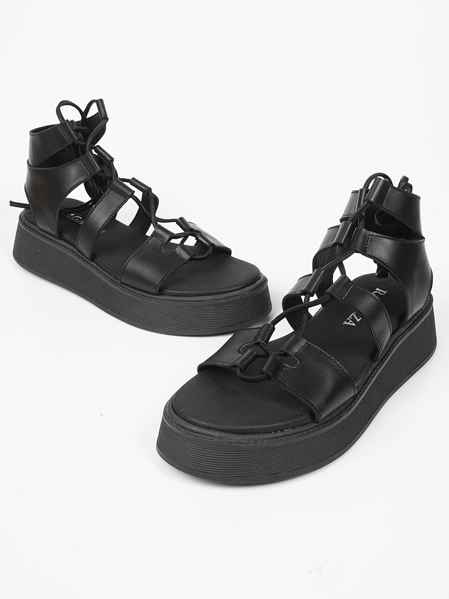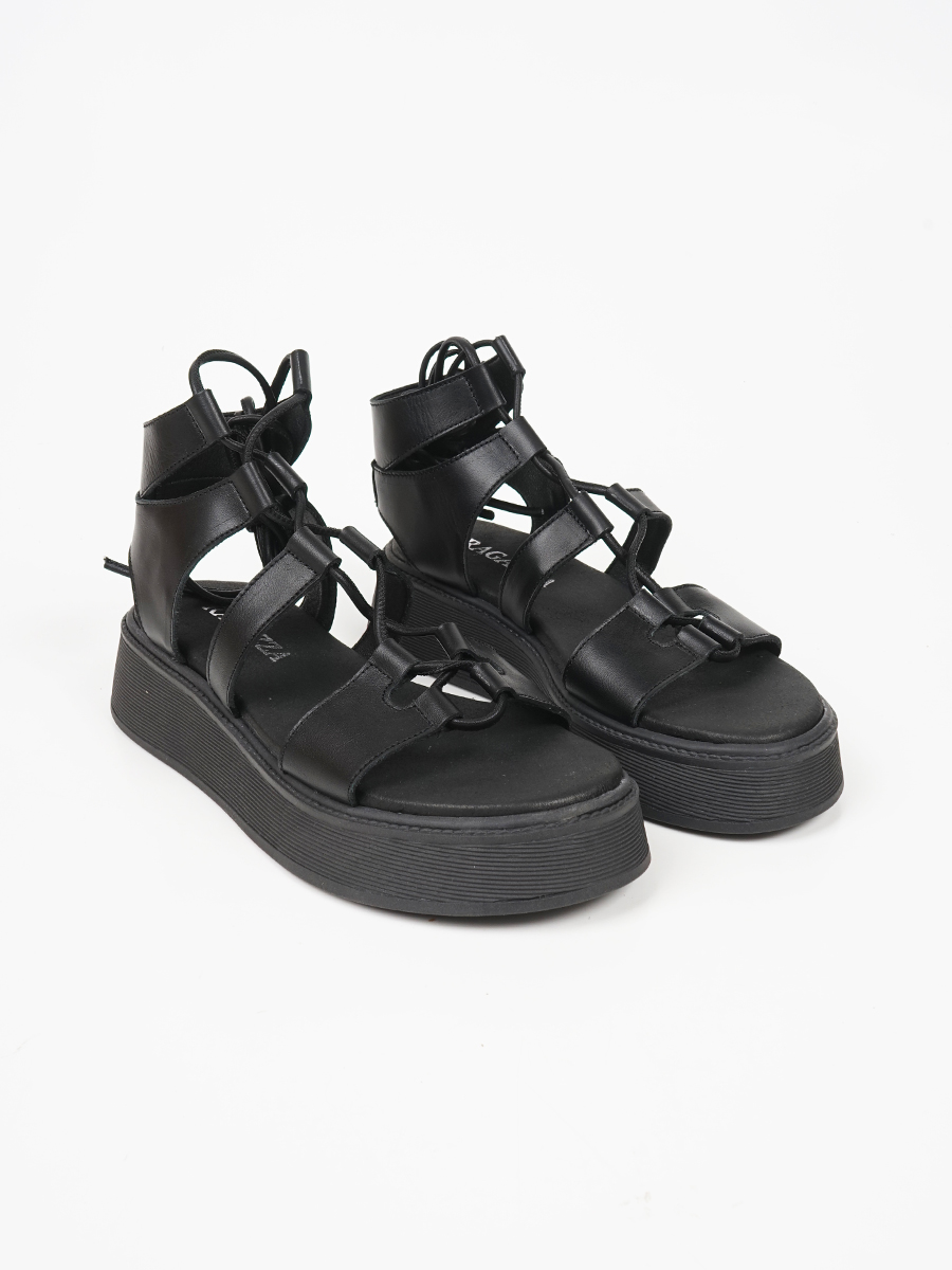 Γυναικείο flatform ελληνικής κατασκευής,εξ΄ολοκλήρου από γνήσιο δέρμα,της εταιρείας Ragazza με κορδόνια.
