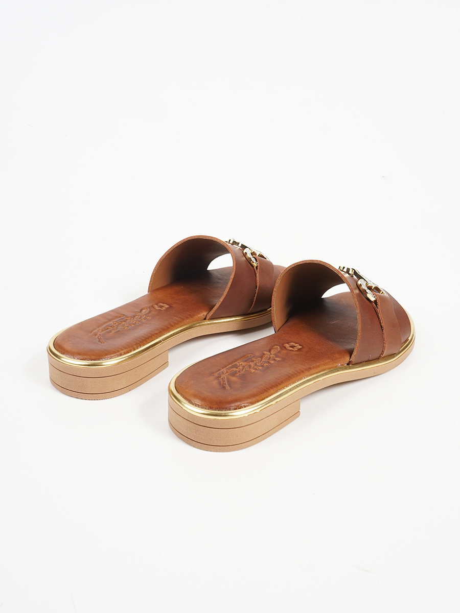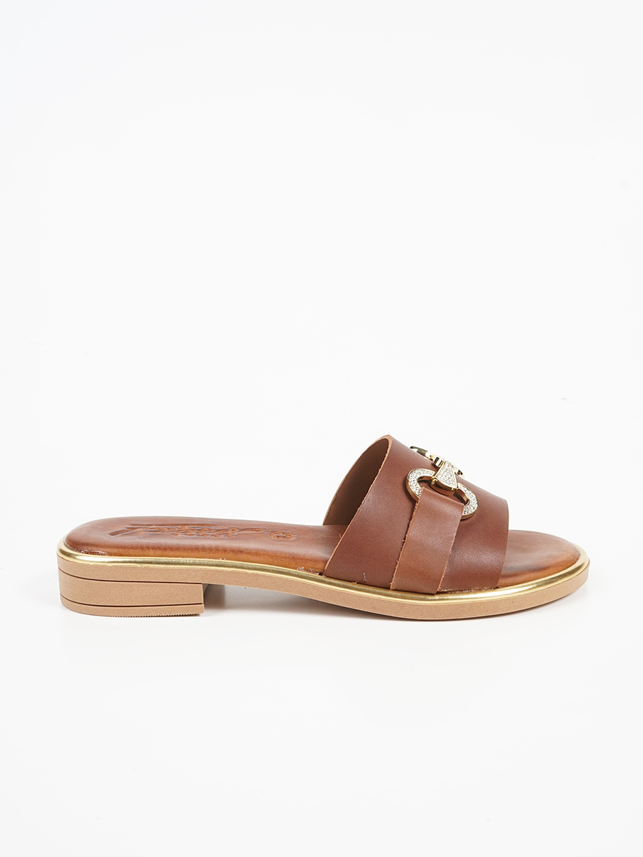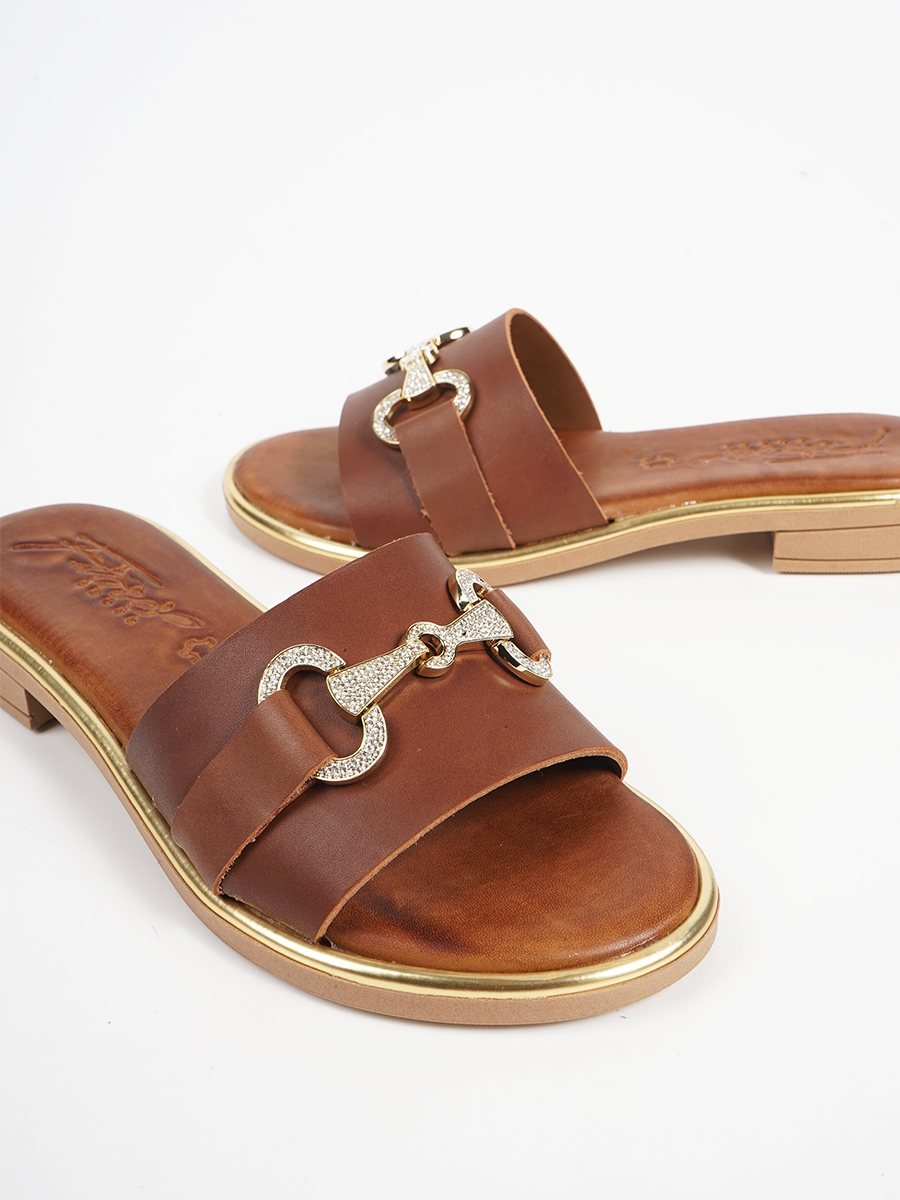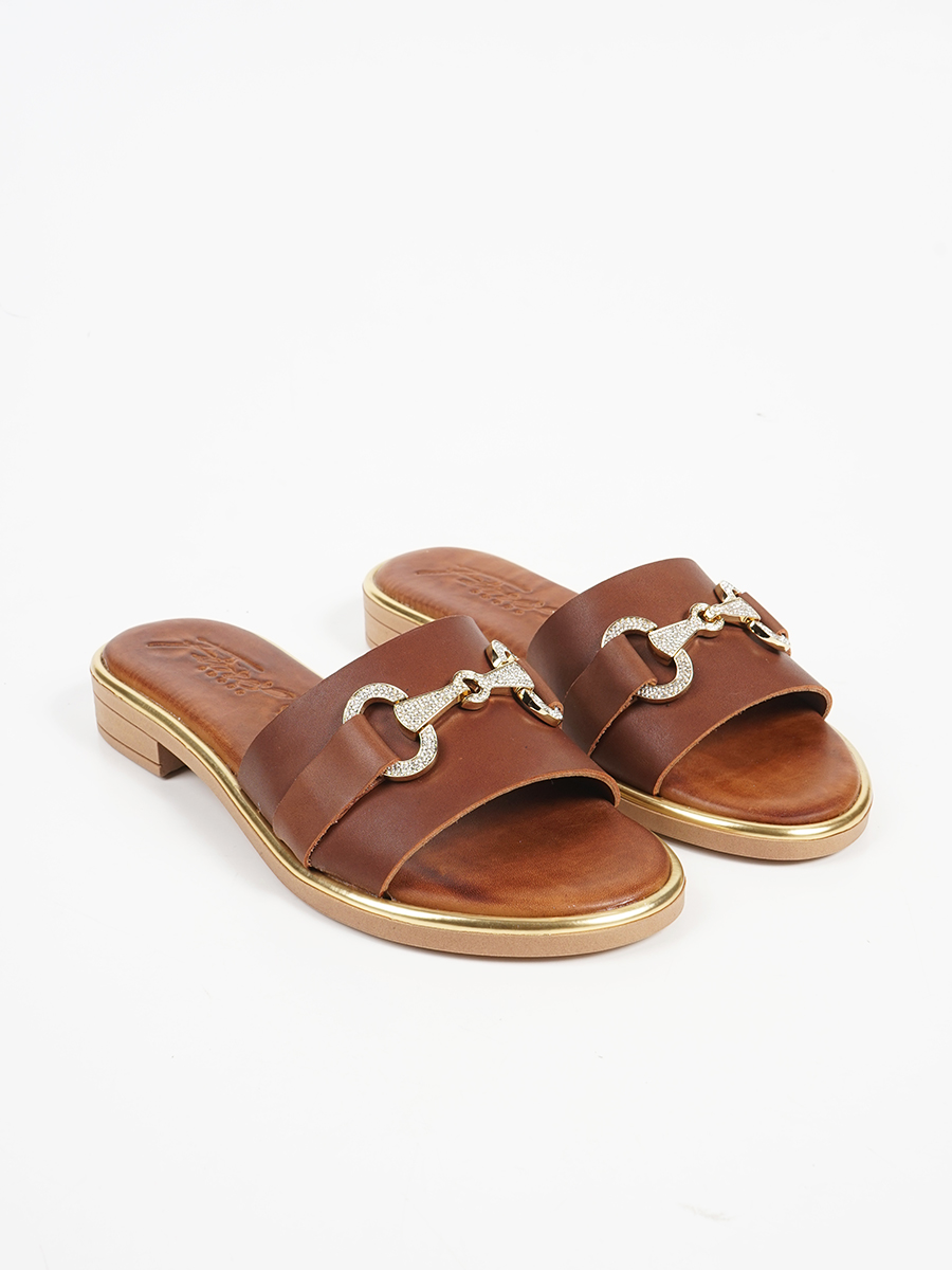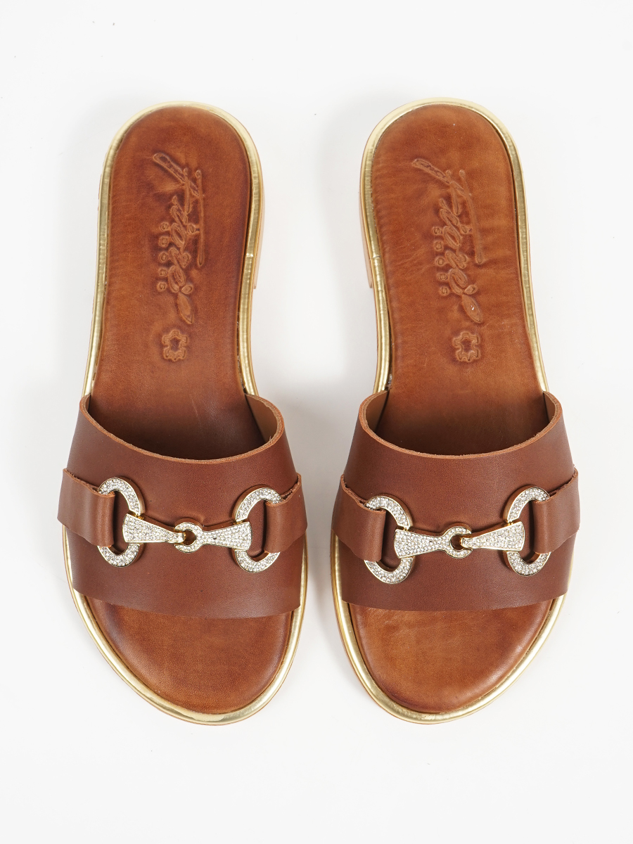Γυναικεία σανδάλια εξ'ολοκλήρου απο γνήσιο δέρμα με άνετο πατάκι και μεταλικη αγκράφα με strass