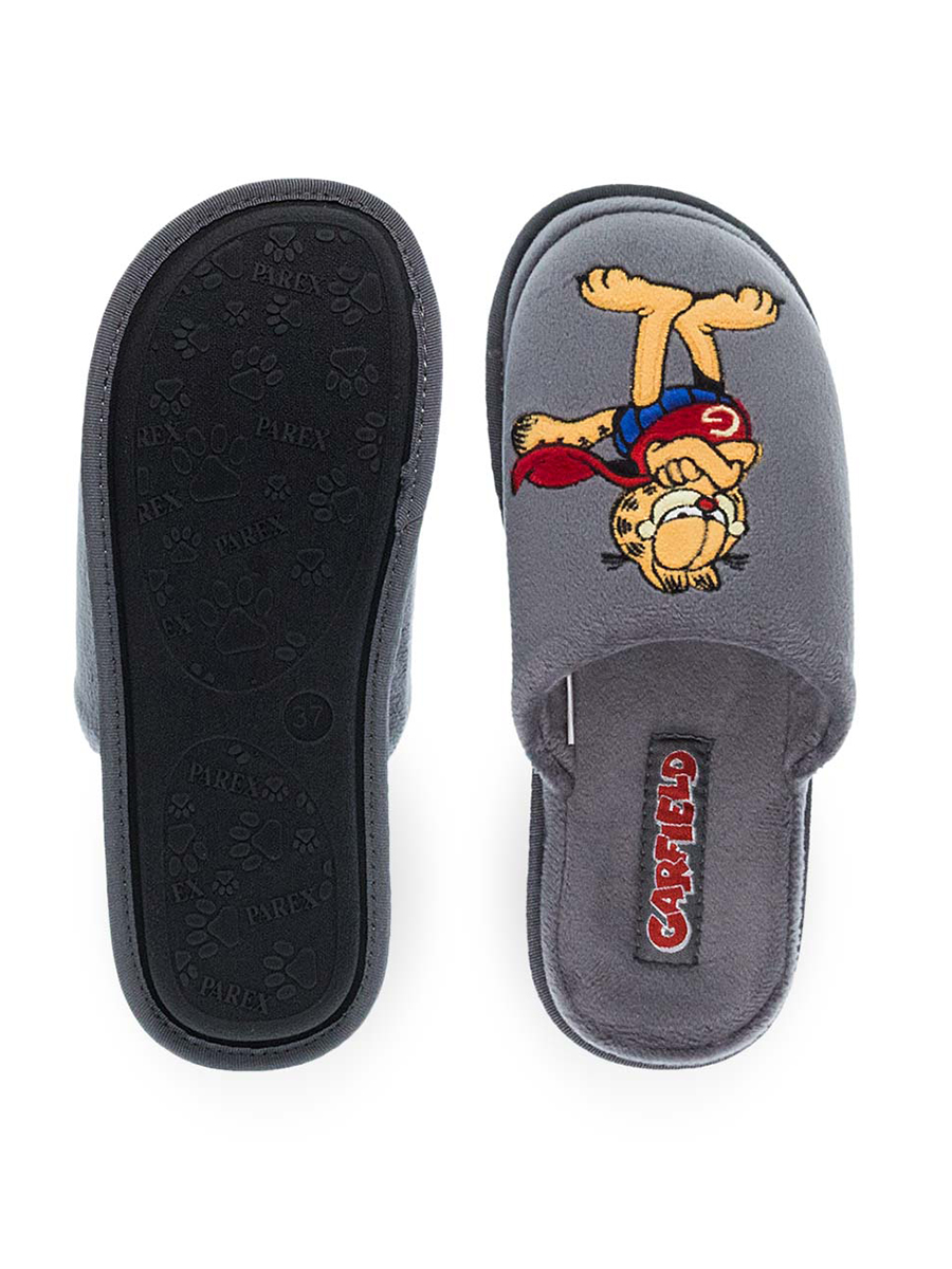 Εφηβική ανατομική παντόφλα,της εταιρείας Parex,με τον Garfield .Διαθέτει εξαιρετικά μαλακό ύφασμα,εύκαμπτη και αντιολισθητική σόλα.Ιδανική για να σας χαρίσει άνεση και ξεκούραση στο σπίτι.