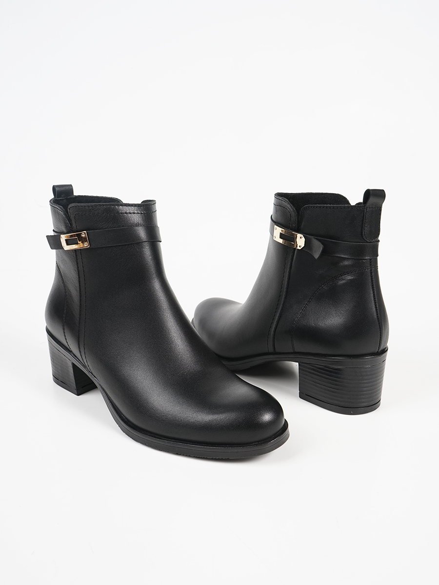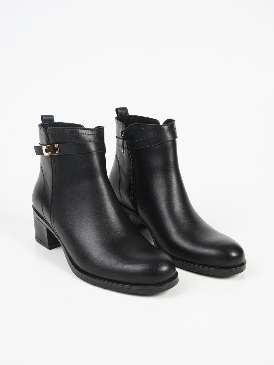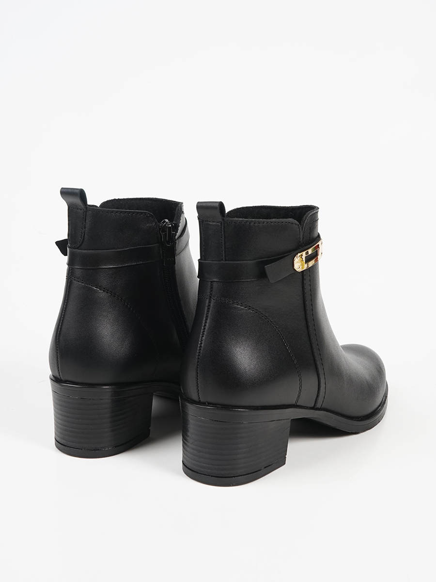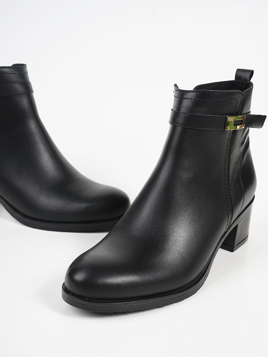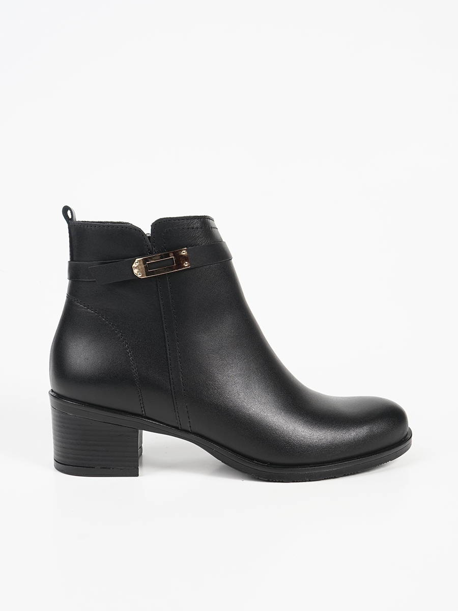 Γυναικεία μποτάκια της Ελληνικής εταιρίας Ragazza. Είναι κατασκευασμένα από γνήσιο δέρμα, ένα υλικό που αναπνέει βοηθώντας στην αποφυγή δυσάρεστων οσμών, ενώ παράλληλα καθαρίζεται εύκολα. Διαθέτει διακοσμητικό λουράκι με αγκράφα και εσωτερικό φερμουάρ.