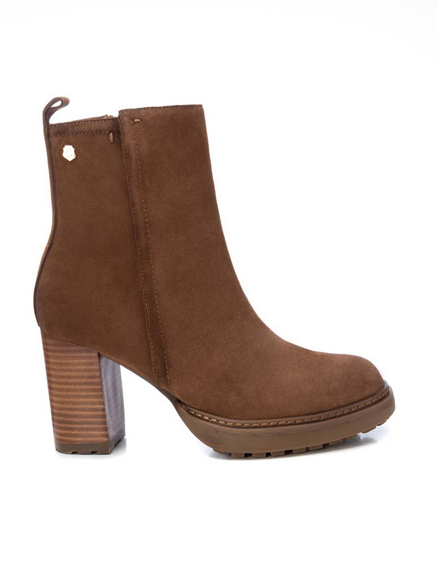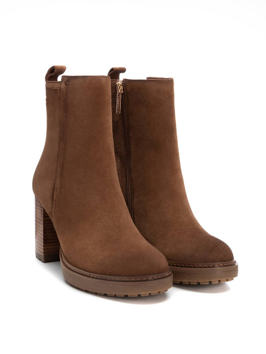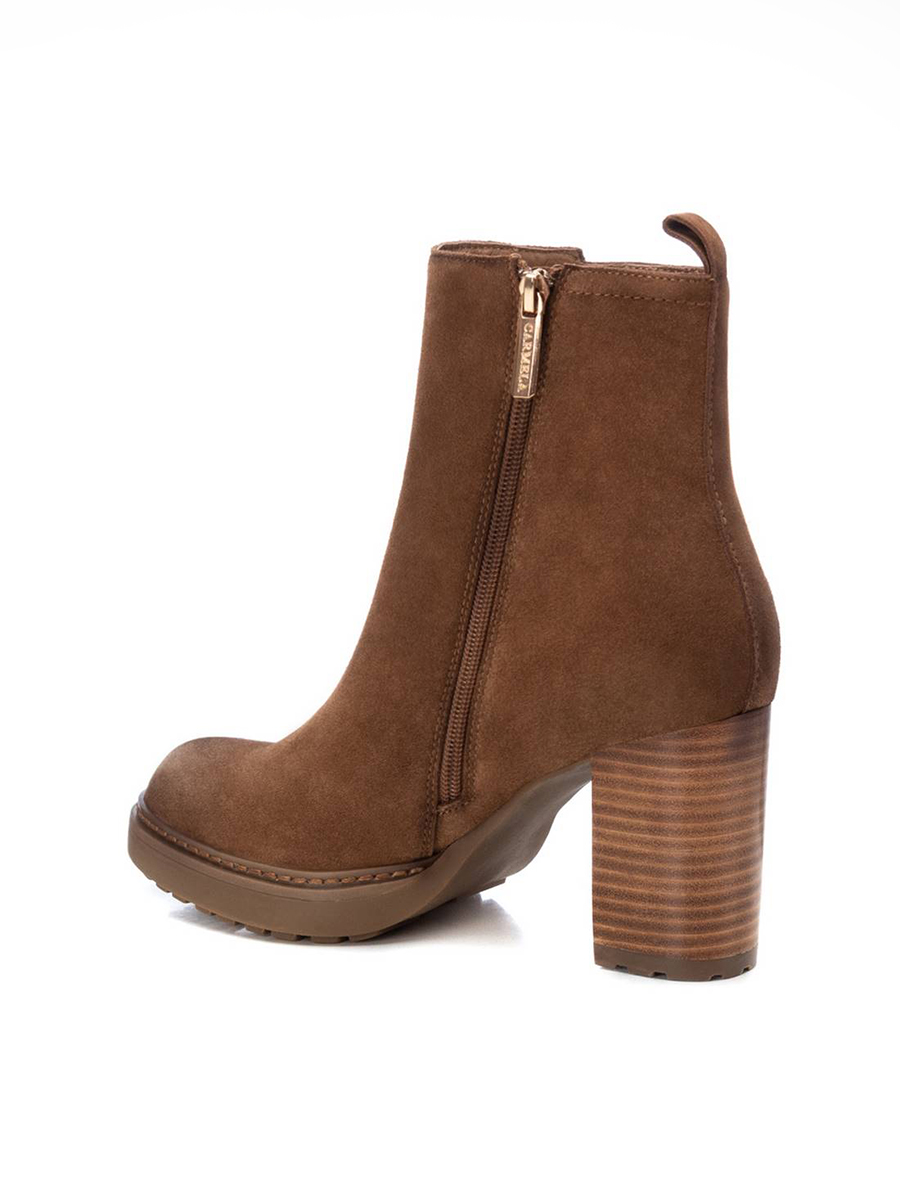 Γυναικείο μποτάκι Carmela από γνήσιο καστόρι δέρμα με μεταλλικές λεπτομέρειες και τρακτερωτή σόλα. Διαθέτει φερμουάρ στο εσωτερικό και ανατομικό δερμάτινο πάτο.