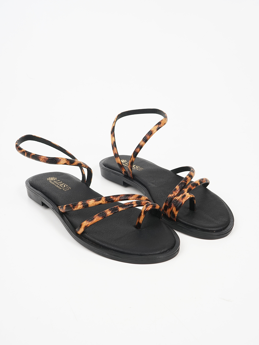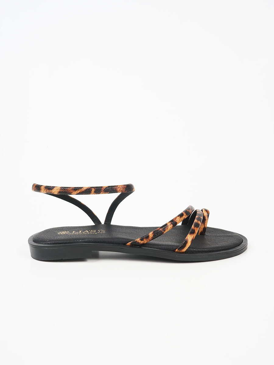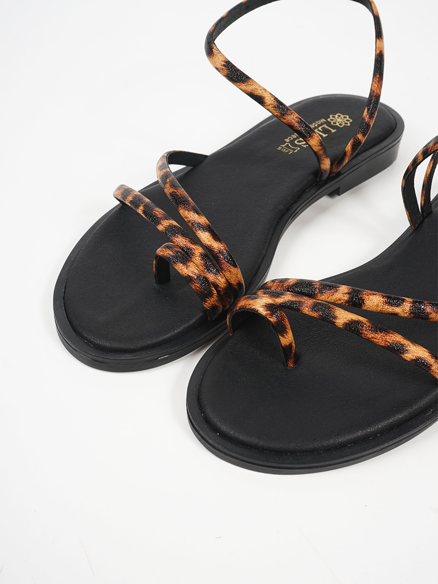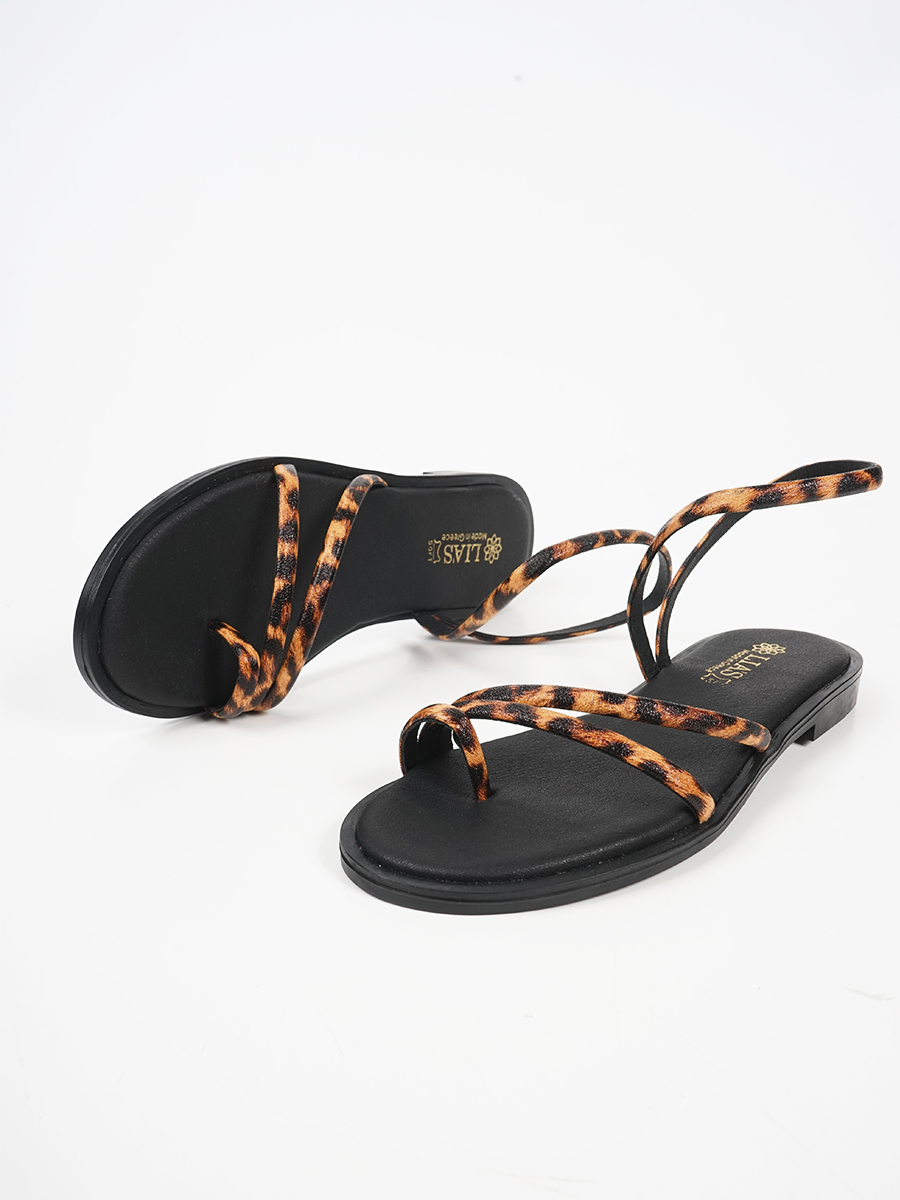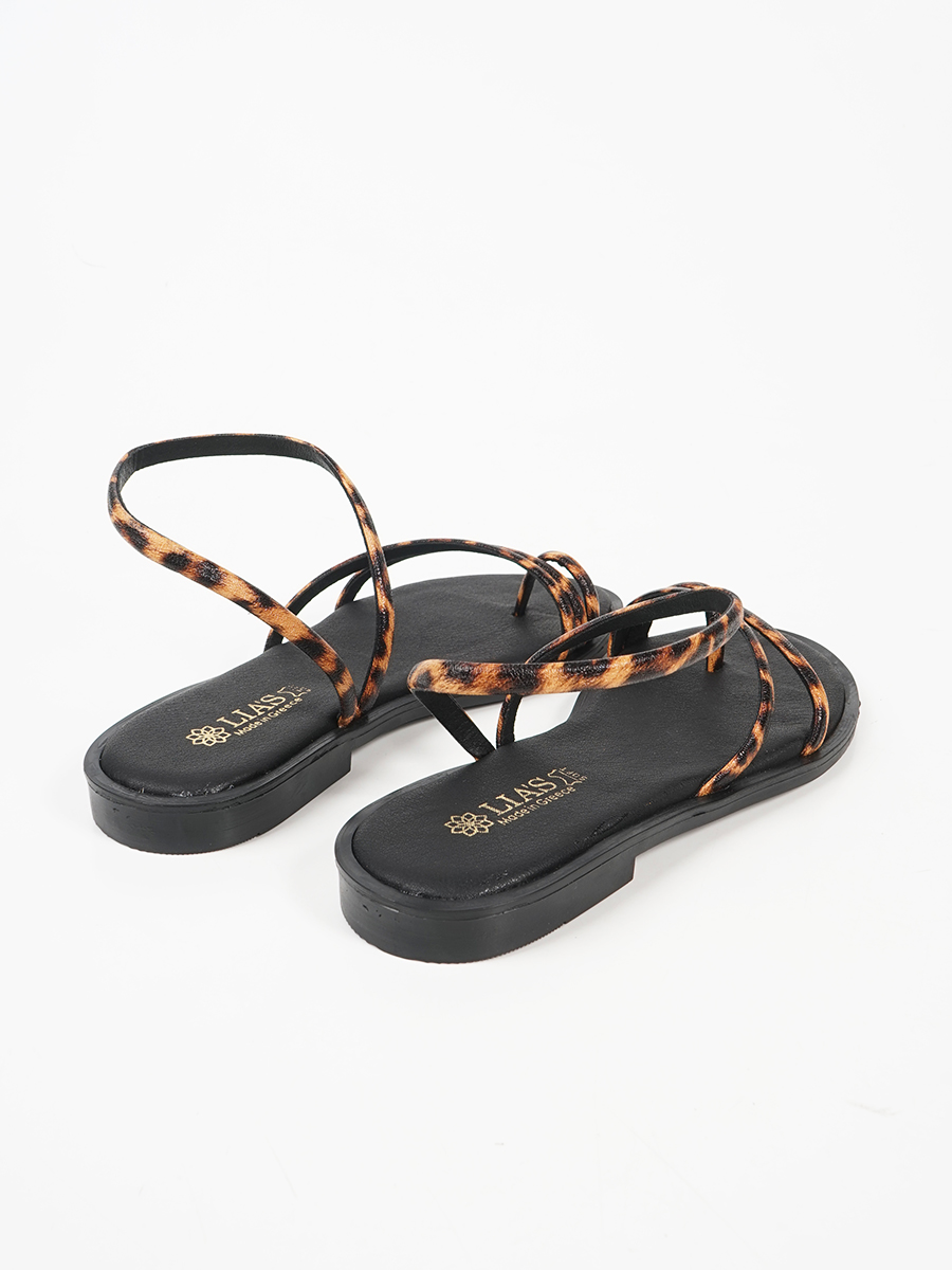 Γυναικέιο δερμάτινο σανδάλι ελληνικής κατασκευής με animal print στα λουριά.