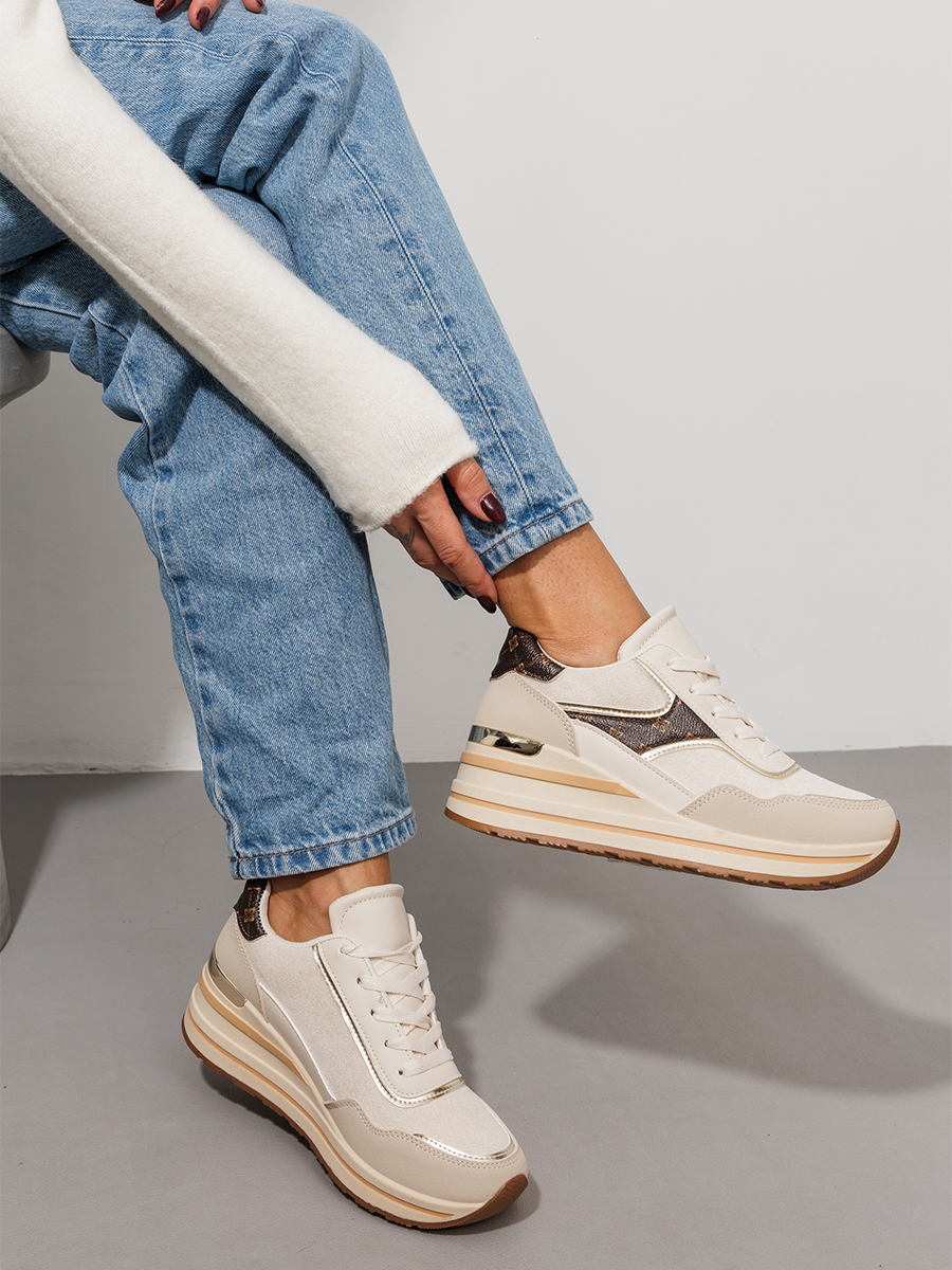Γυναικείο δίσολο sneaker με χρυσές λεπτομέριες