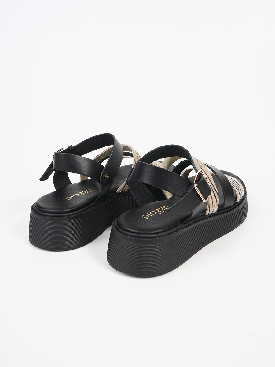 Γυναικείο flatform με λουράκια και κούμπωμα στον αστράγαλο.Ελληνικής κατασκευής.