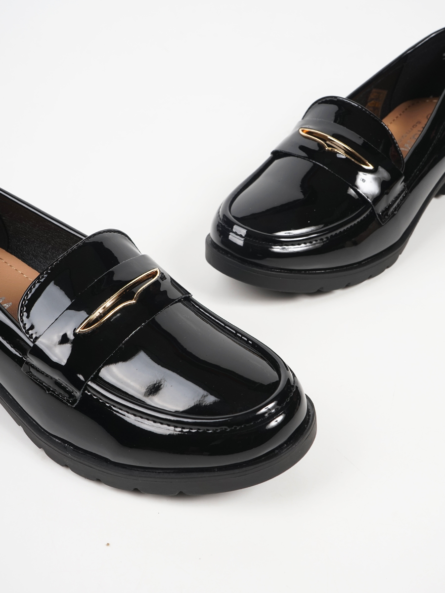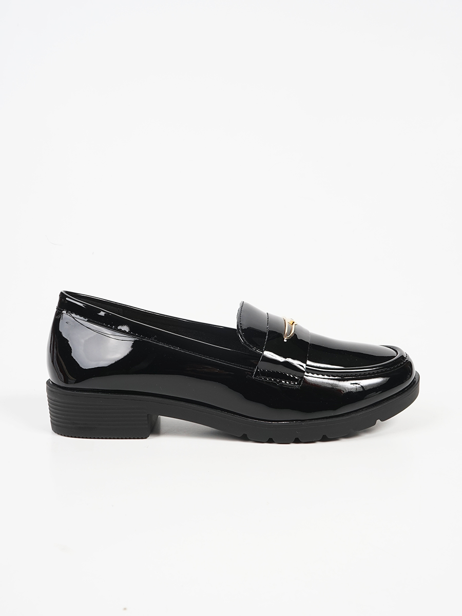 Γυναικεία λουστρίνι loafers με ανάγλυφο διακοσμητικό.