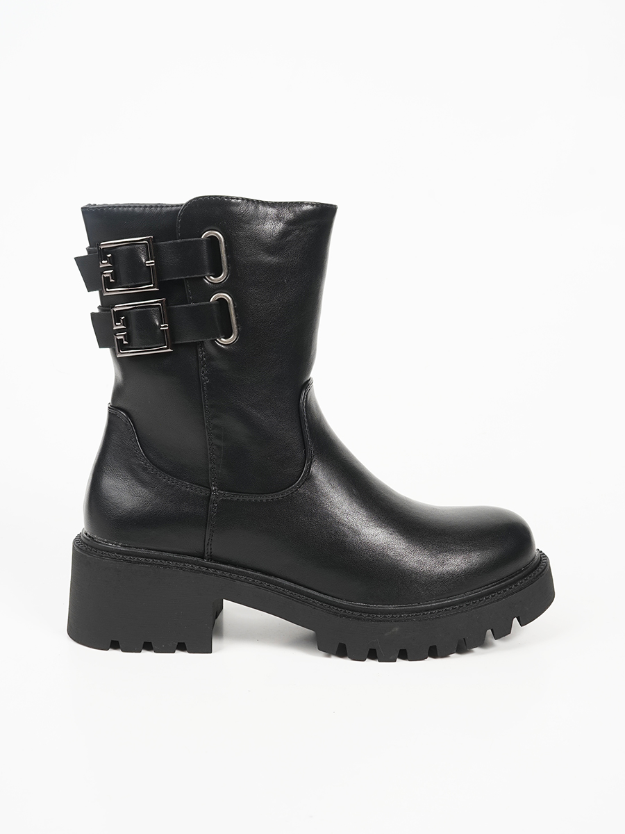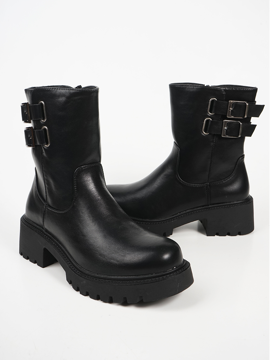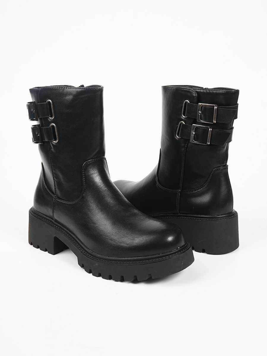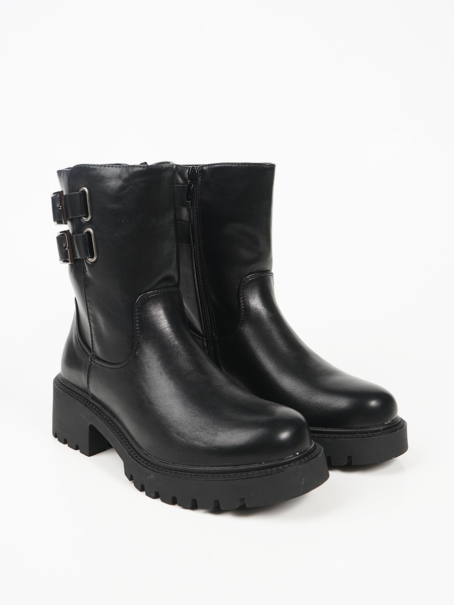 Γυναικεία μποτάκια με διπλή αγκράφα και φερμουάρ.
