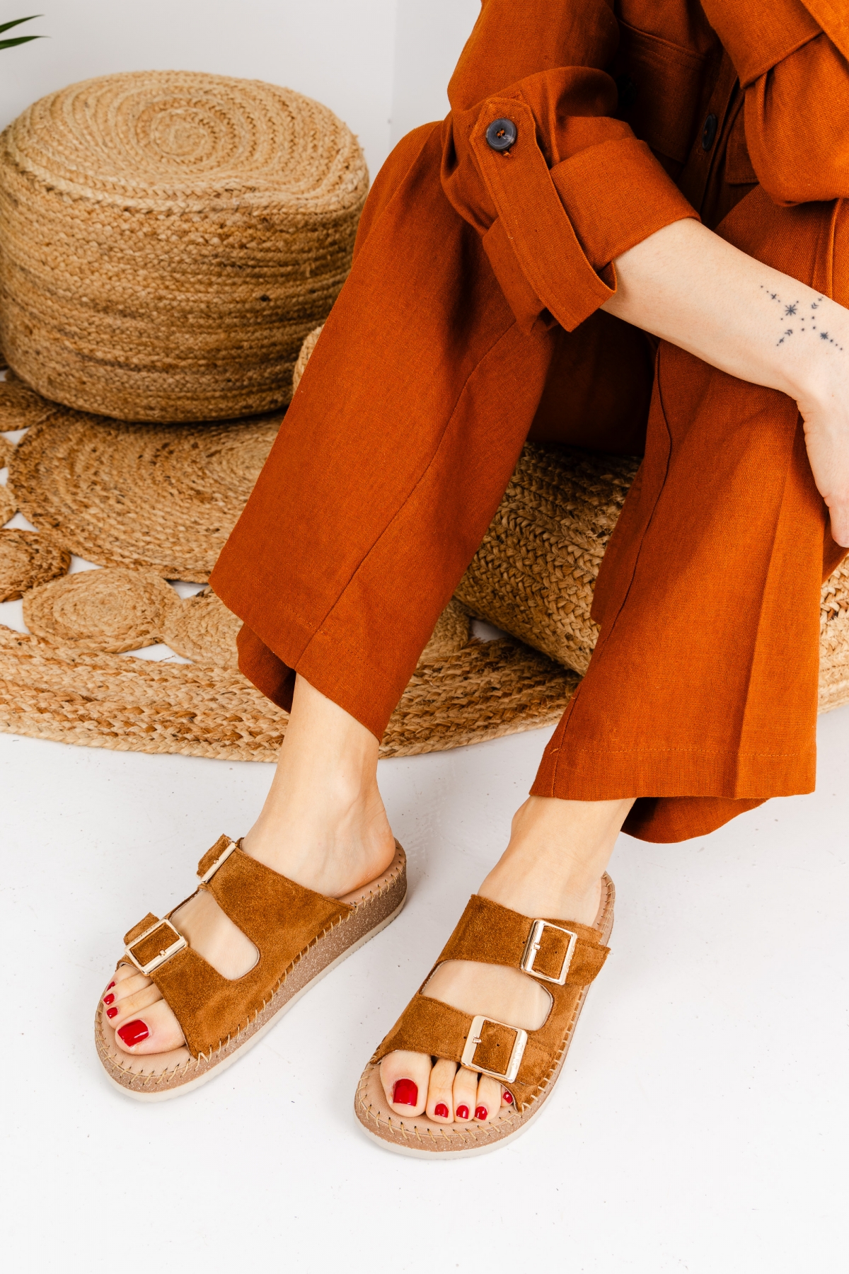 Τα γυναικεία ανατομικά σανδάλια OVVIO αποτελούν την ιδανική επιλογή για την γυναίκα που αναζητά την καθημερινή άνεση χωρίς να θυσιάζει την κομψότητά της. Κατασκευασμένα στην Ελλάδα από γνήσιο δέρμα εξαιρετικής ποιότητας, διαθέτουν μαλακό ανατομικό πάτο που απορροφά τους κραδασμούς και προσφέρει ξεκούραστο βάδισμα όλη την ημέρα. Ο σχεδιασμός τους με τα δύο ρυθμιζόμενα λουράκια και τις χρυσές μεταλλικές αγκράφες εξασφαλίζει την τέλεια εφαρμογή σε κάθε τύπο ποδιού. Η ελαφριά και εύκαμπτη σόλα τεχνολογίας Flex Sole παρέχει σταθερότητα και ελευθερία κίνησης, κάνοντάς τα απαραίτητα για τις καλοκαιρινές σας εμφανίσεις.