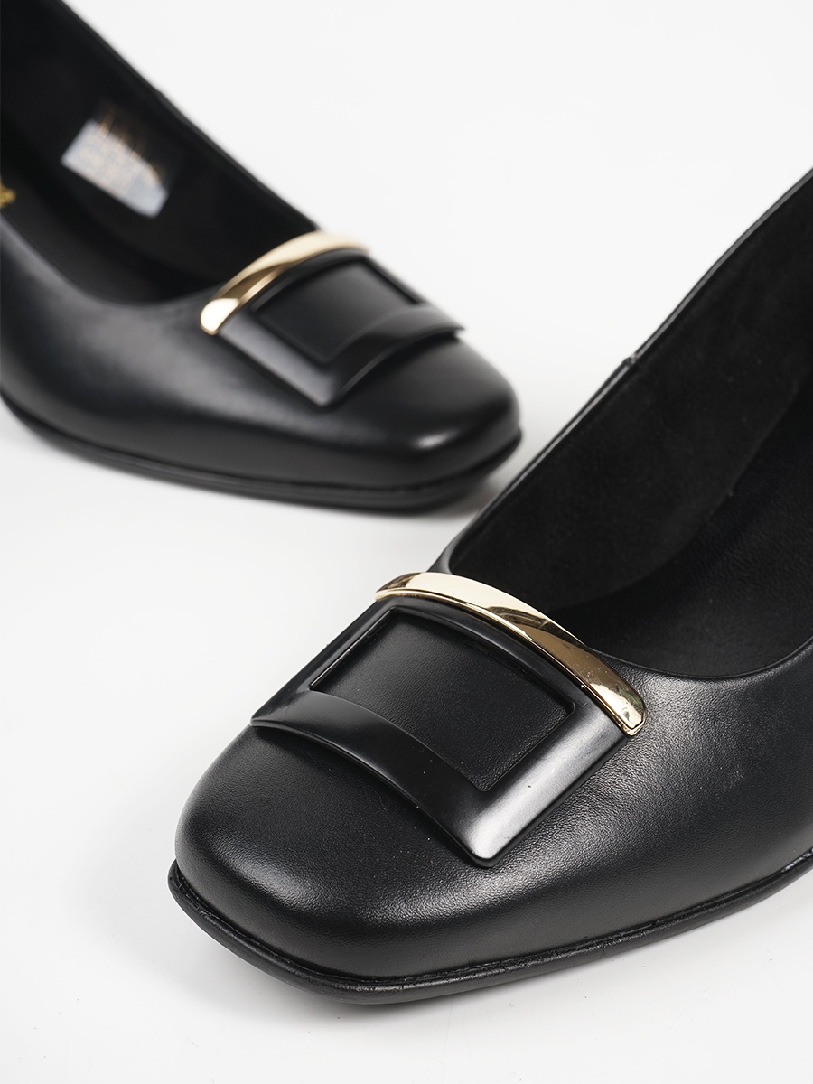 Γυναικείες δερμάτινες γόβες της Ragazza, με μεταλλική λεπτομέρεια και αγκράφα στο επάνω μέρος.