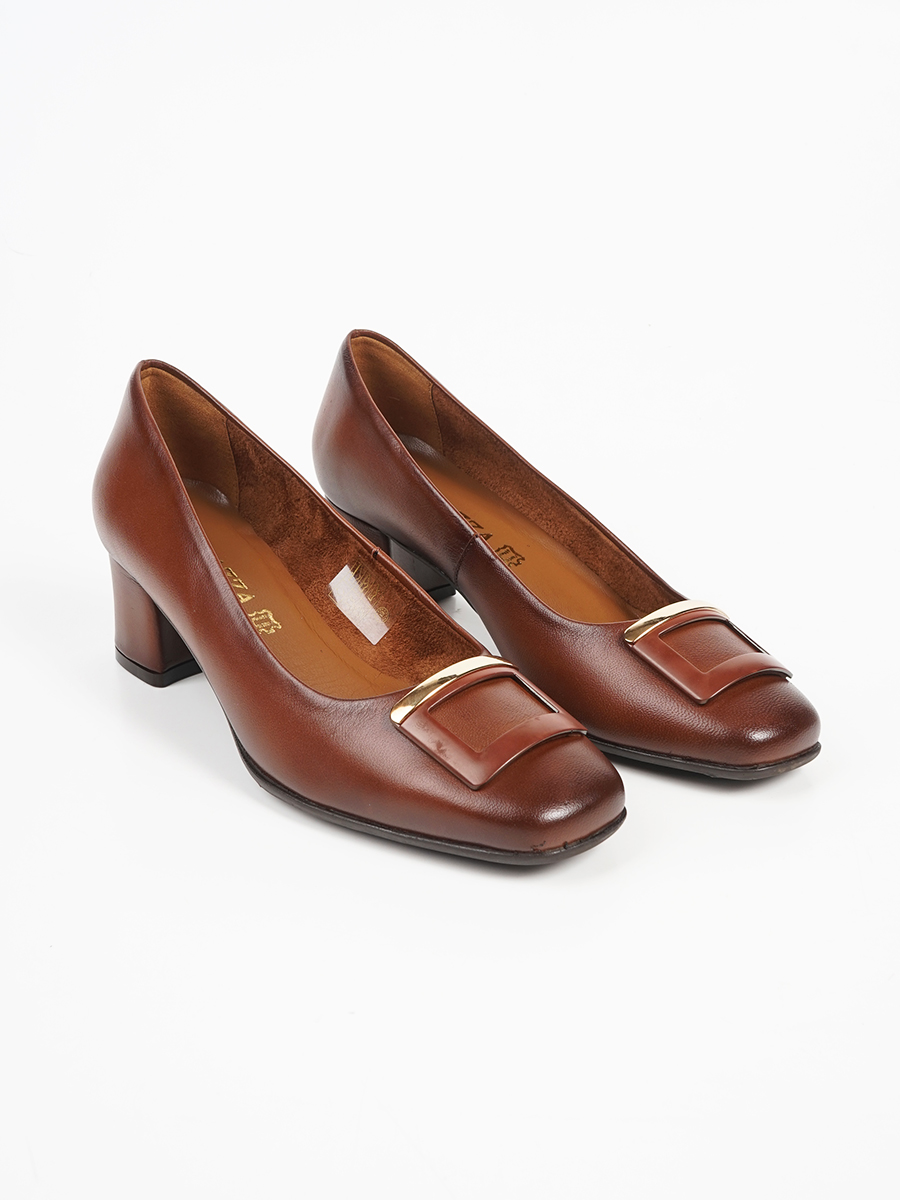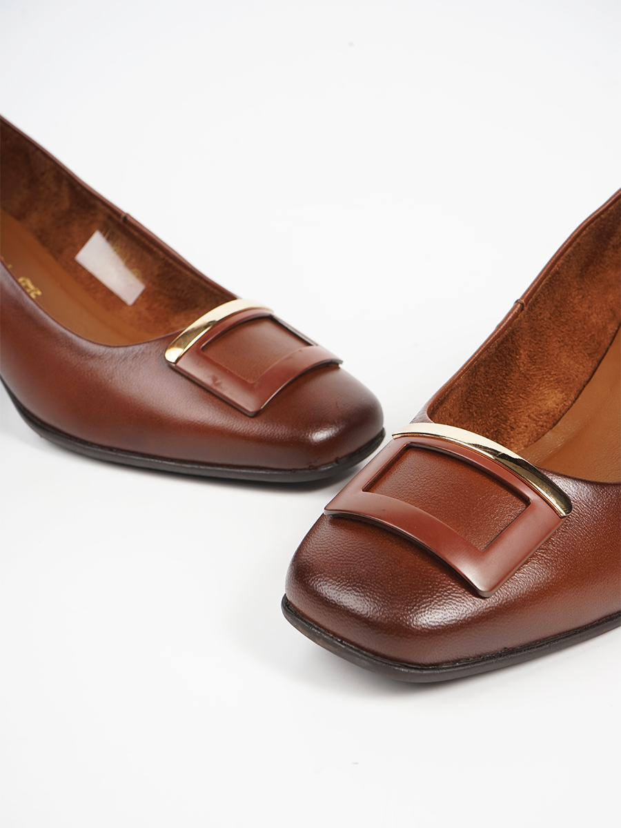 Γυναικείες δερμάτινες γόβες της Ragazza, με μεταλλική λεπτομέρεια και αγκράφα στο επάνω μέρος.