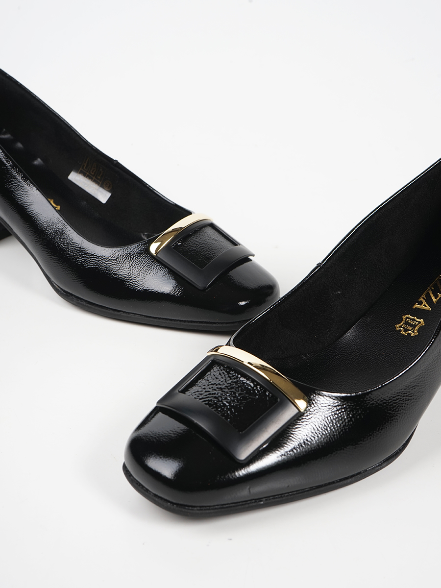 Γυναικείες δερμάτινες γόβες της Ragazza, με μεταλλική λεπτομέρεια και αγκράφα στο επάνω μέρος.