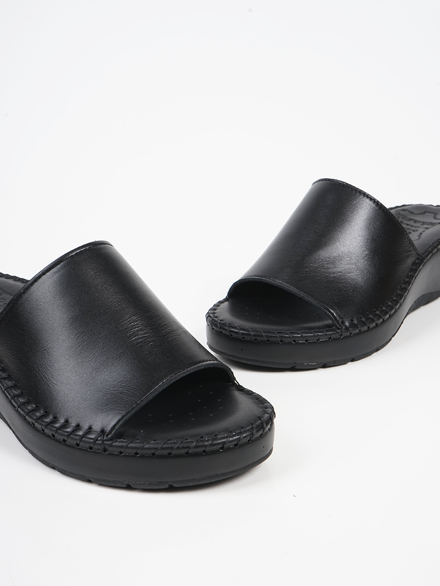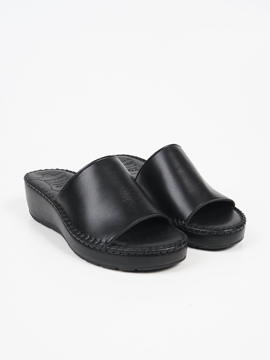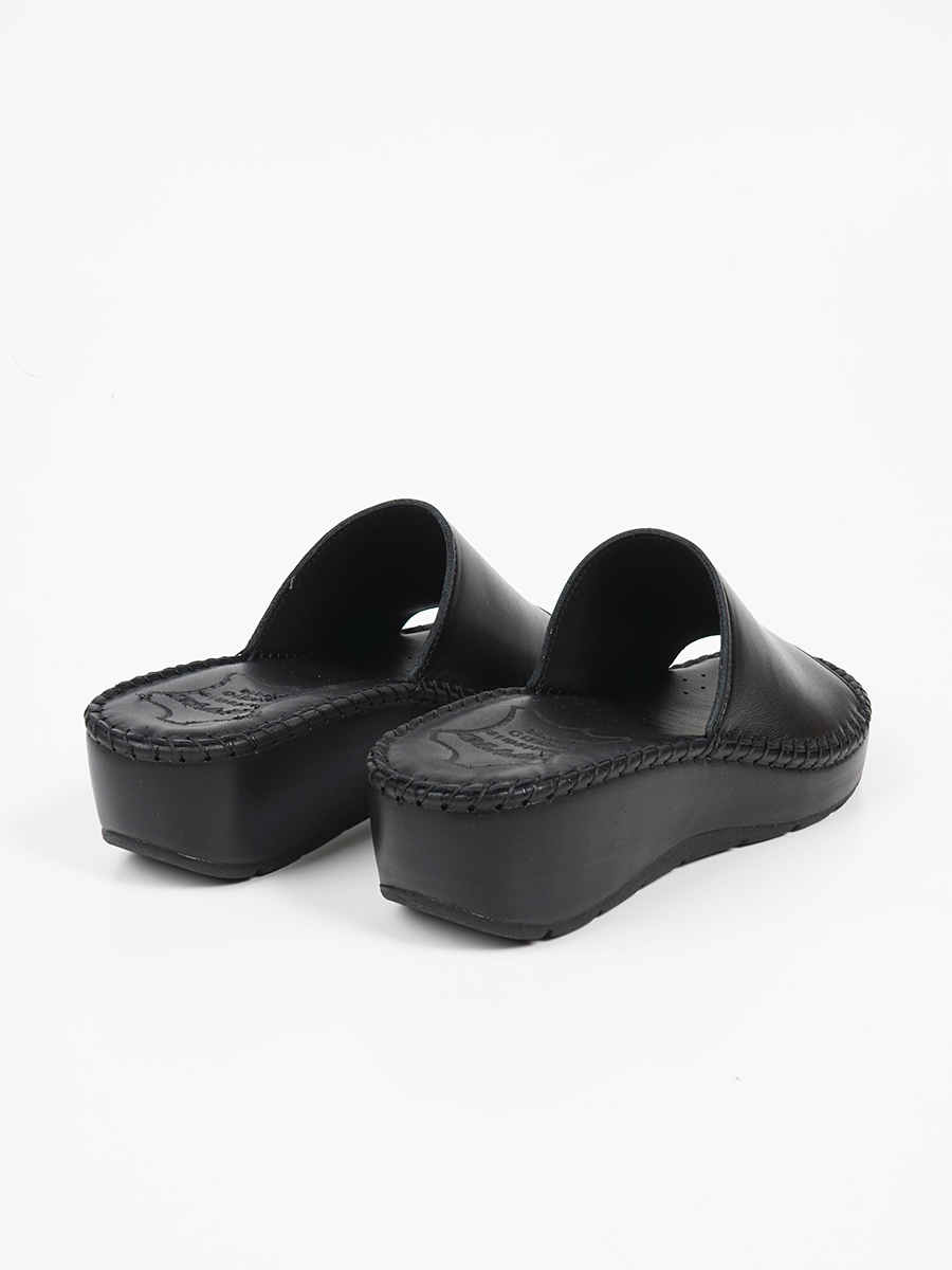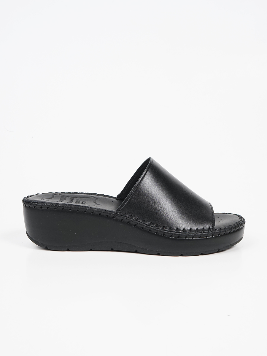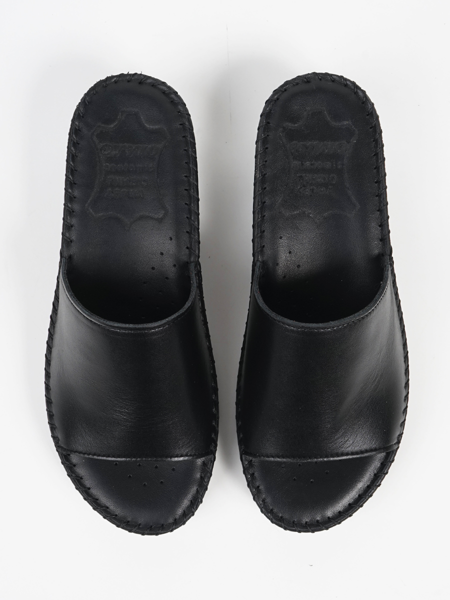 Γυναικεία δερμάτινη παντόφλα,ελληνικής κατασκευής.Διαθέτει ανατομικό πάτο κατασκευασμένο από μαλακό δέρμα το οποίο απορροφά τους κραδασμούς.