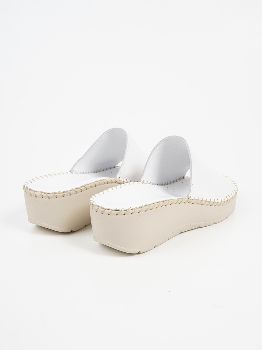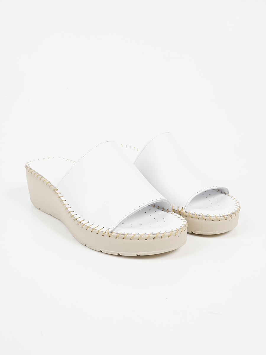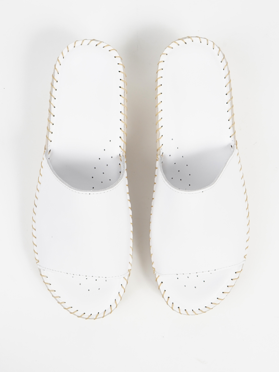 Γυναικεία δερμάτινη παντόφλα,ελληνικής κατασκευής.Διαθέτει ανατομικό πάτο κατασκευασμένο από μαλακό δέρμα το οποίο απορροφά τους κραδασμούς.