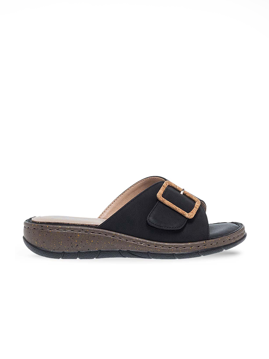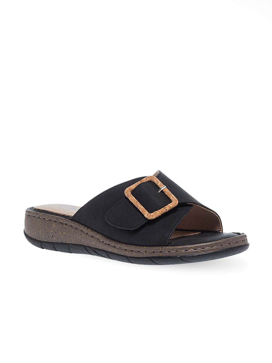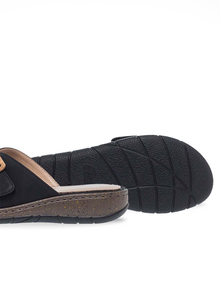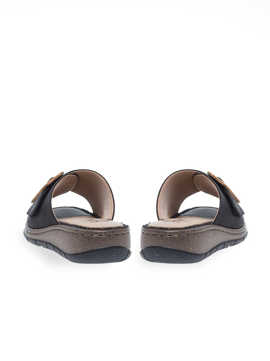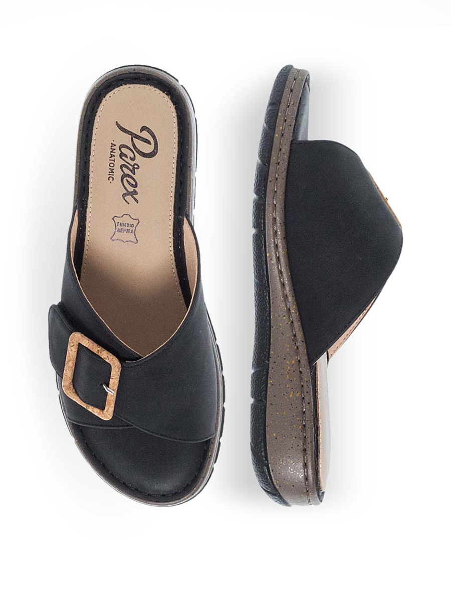 Γυναικεία σαγιονάρα από την διάσημη εταιρεία Parex με αυτοκόλλητο στην φάσα και διακριτική αγκράφα.Διαθέτει ανατομικό πάτο κατασκευασμένο από μαλακό δέρμα το οποίο απορροφά τους κραδασμούς και το τακούνι της είναι ιδανικό για να μην κουράζει τη μέση.