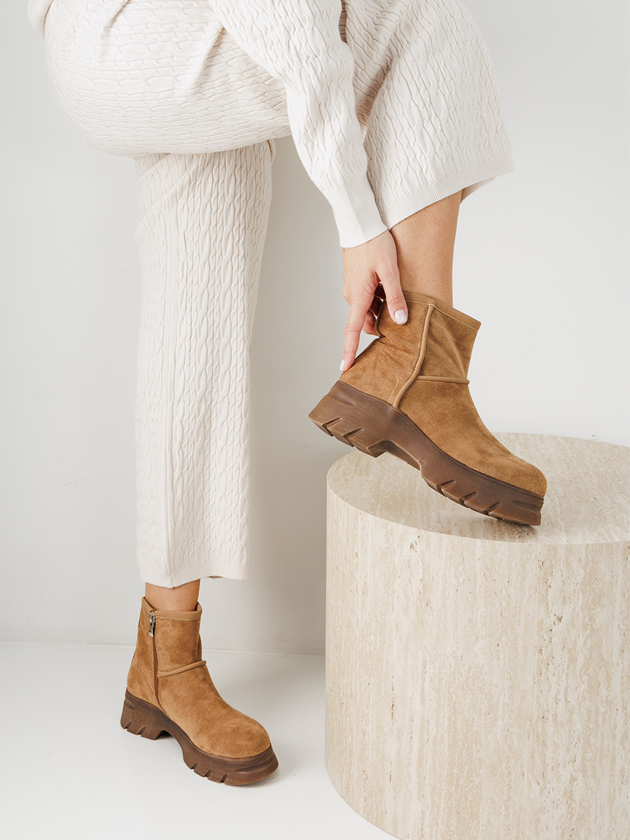 Αναδείξτε το στυλ σας με αυτά τα μοντέρνα μποτάκια μέχρι τον αστράγαλο που θα κλέψουν την παράσταση με σουέτ υφή . Η χοντρή σόλα τους προσφέρει άνεση και σταθερότητα σε κάθε βήμα.