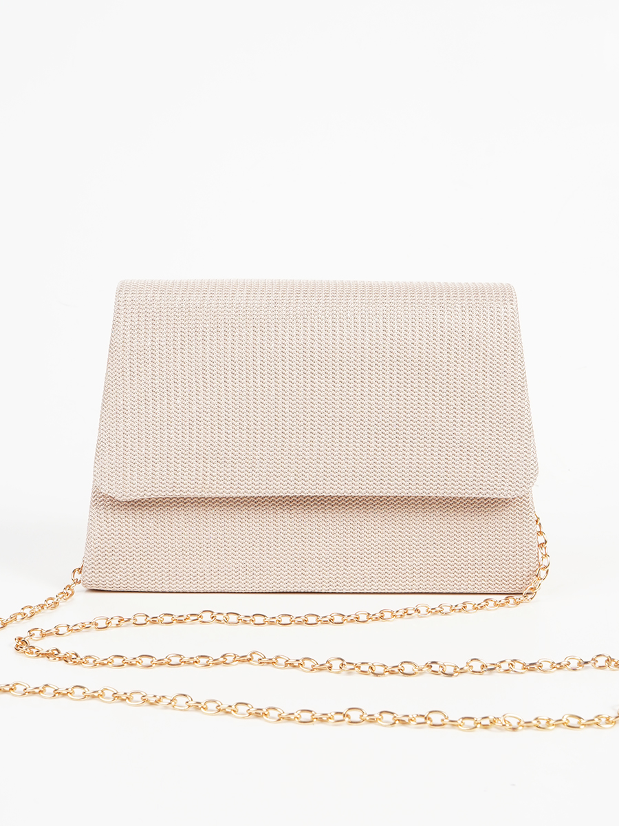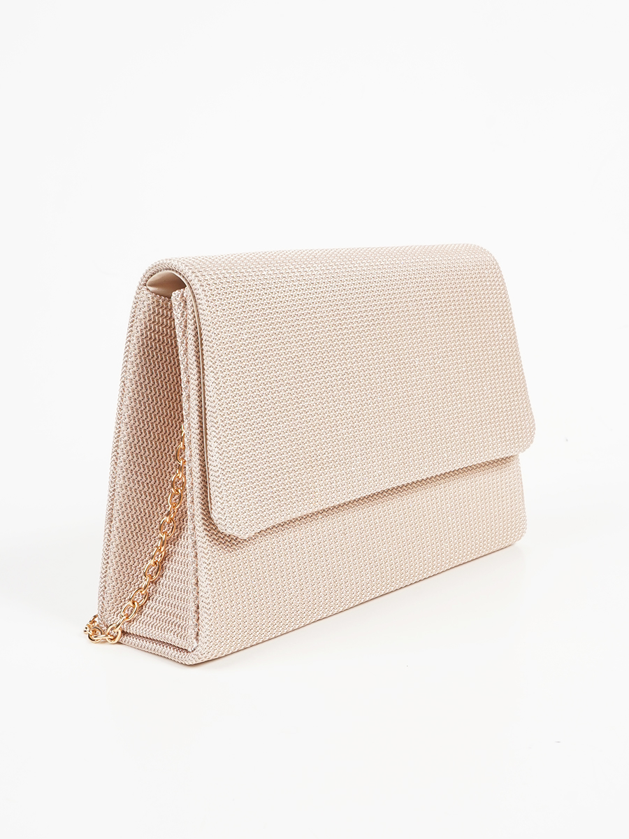 Γυναικείο βραδινό τσαντάκι με εφέ πλεκτού. Διαθέτει και εσωτερική αλυσίδα για να φορεθεί και χιαστί.