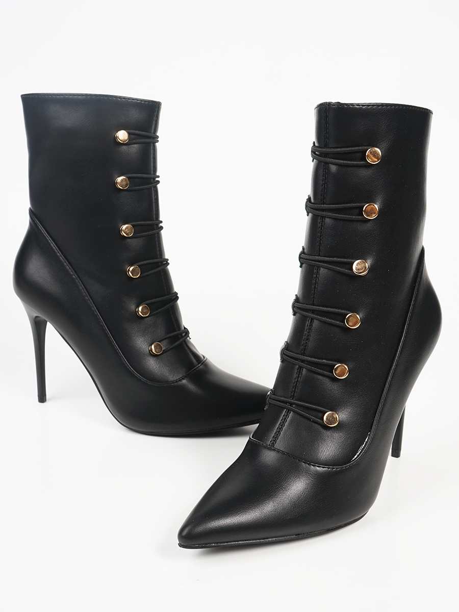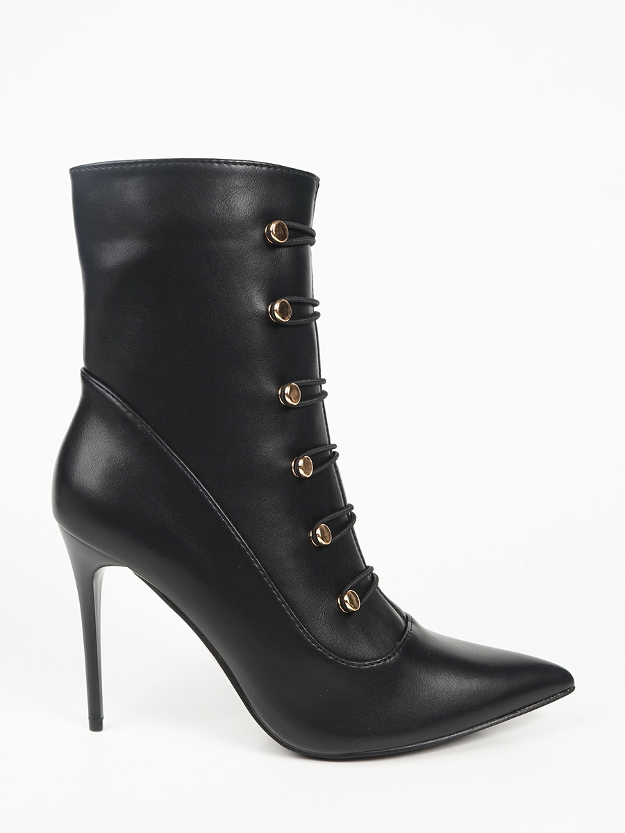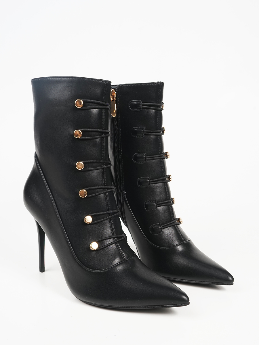 Γυναικείο μποτάκι με μυτερή μύτη και χρυσές λεπτομέρειες.Ιδανική για τις βραδινές σας εξόδους!