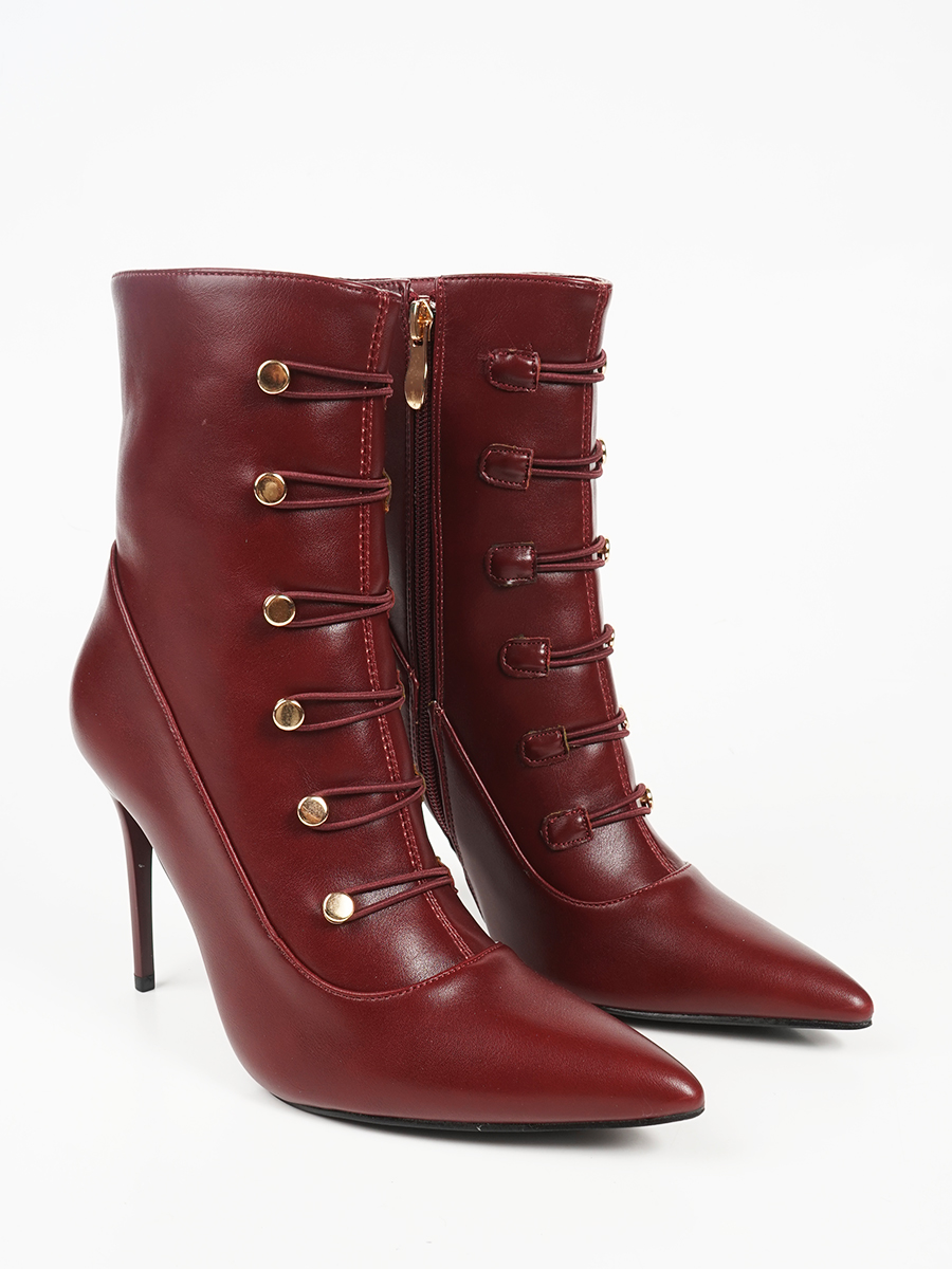 Γυναικείο μποτάκι με μυτερή μύτη και χρυσές λεπτομέρειες.Ιδανική για τις βραδινές σας εξόδους!