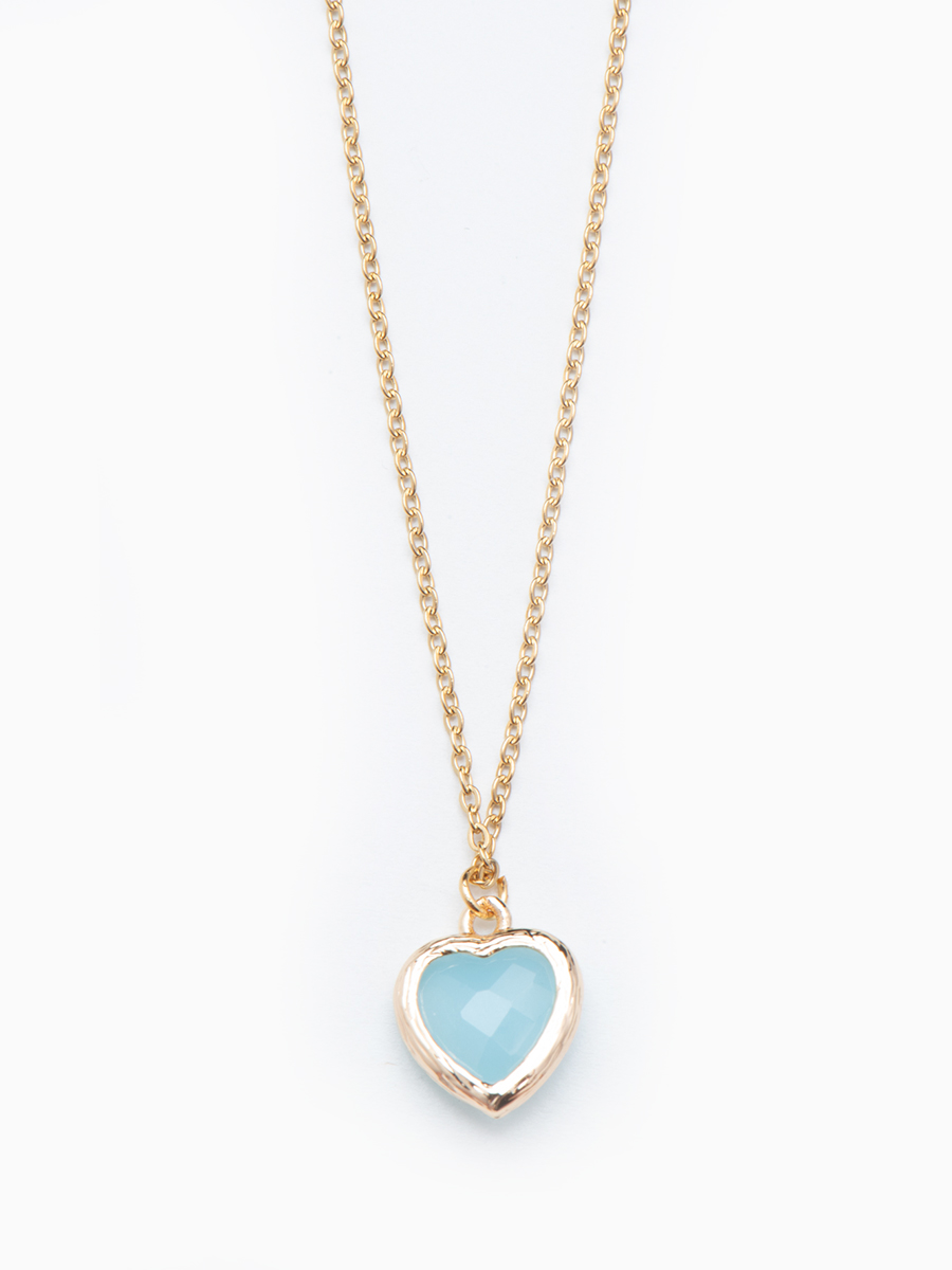 Γυναικείο κολιέ με αλυσίδα και γαλάζια κάρδια. Κατασκευασμένο από 100% ανοξείδωτο ατσάλι.