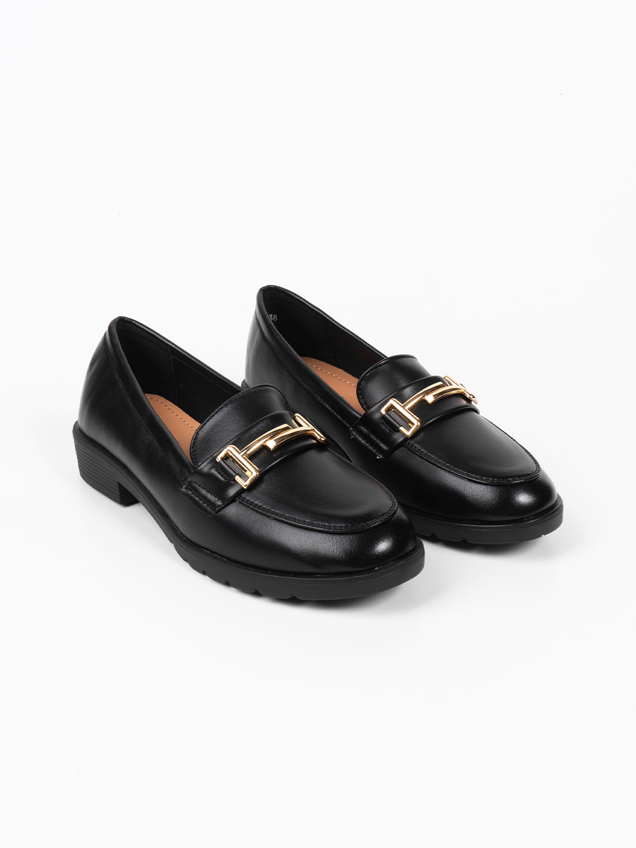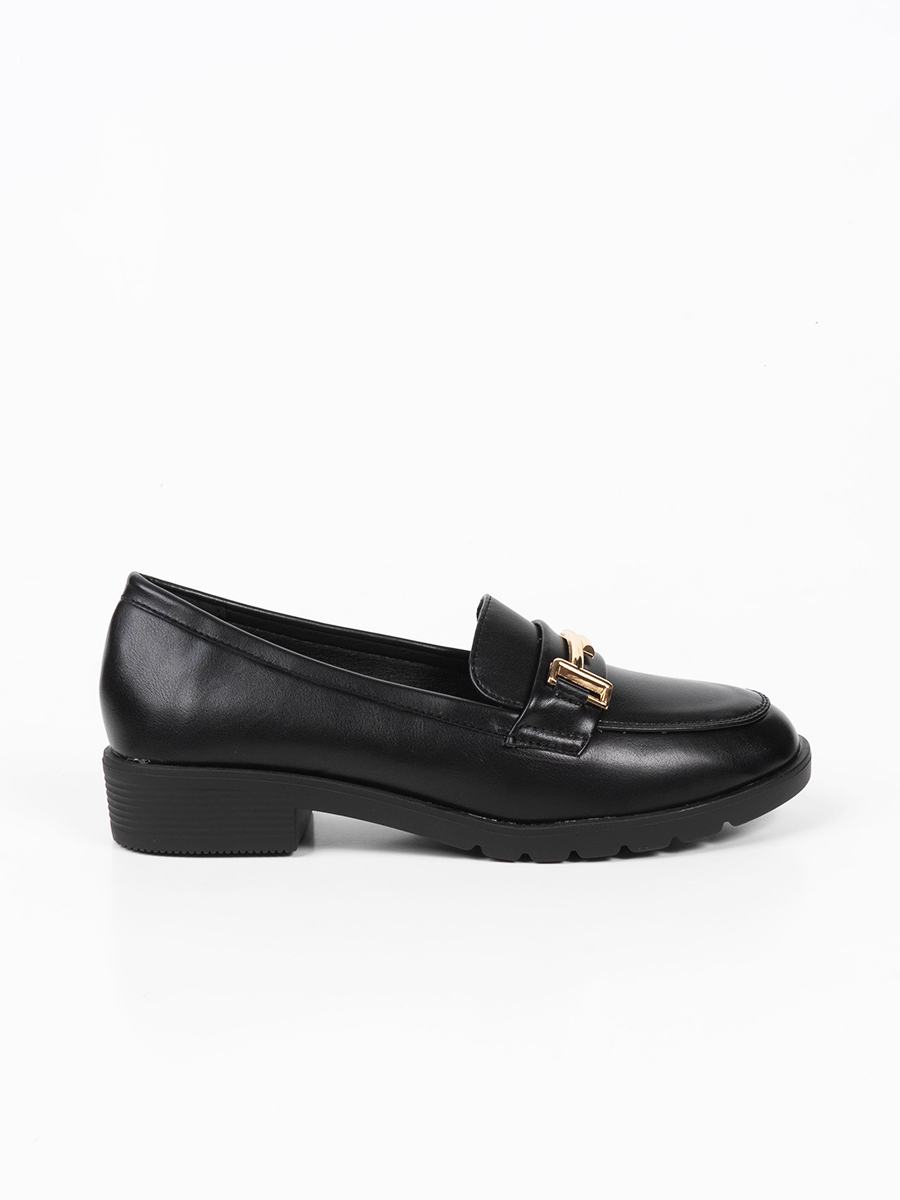 Γυναικεία ματ loafers με μεταλλικό διακοσμητικό.