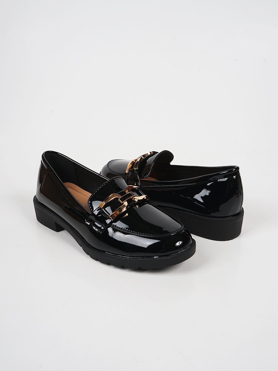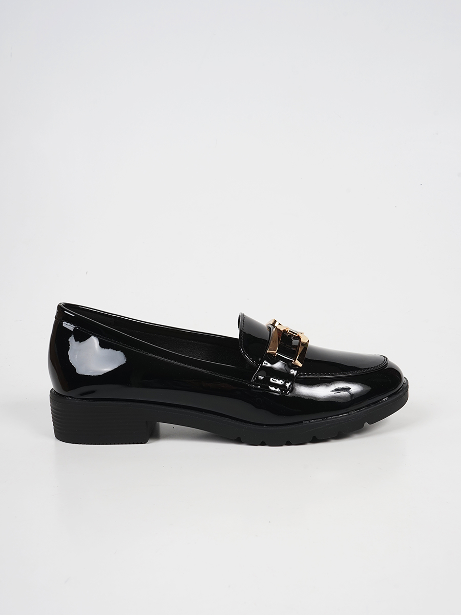 Γυναικεία λουστρίνι loafers με μεταλλικό διακοσμητικό.