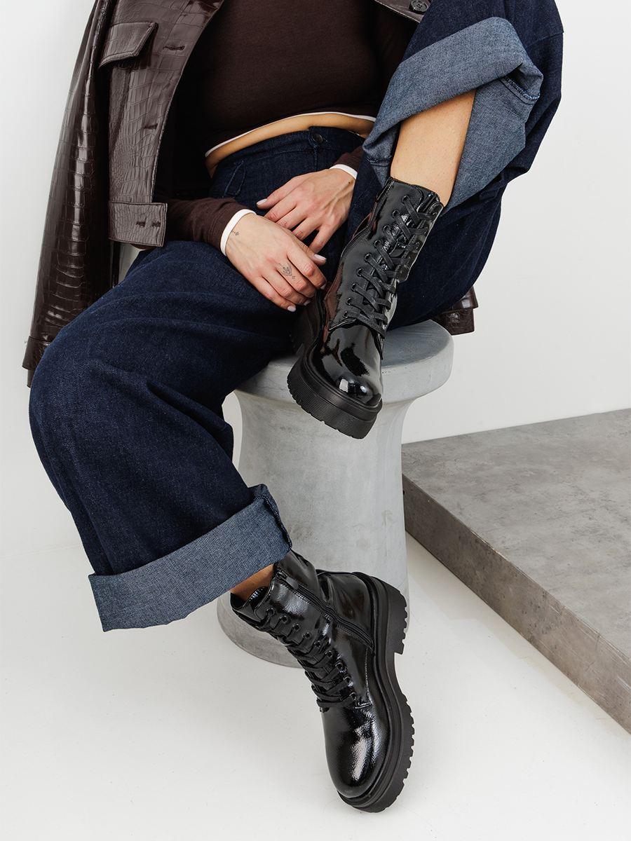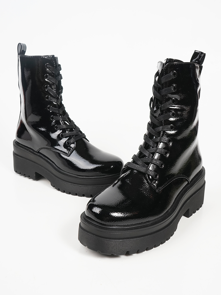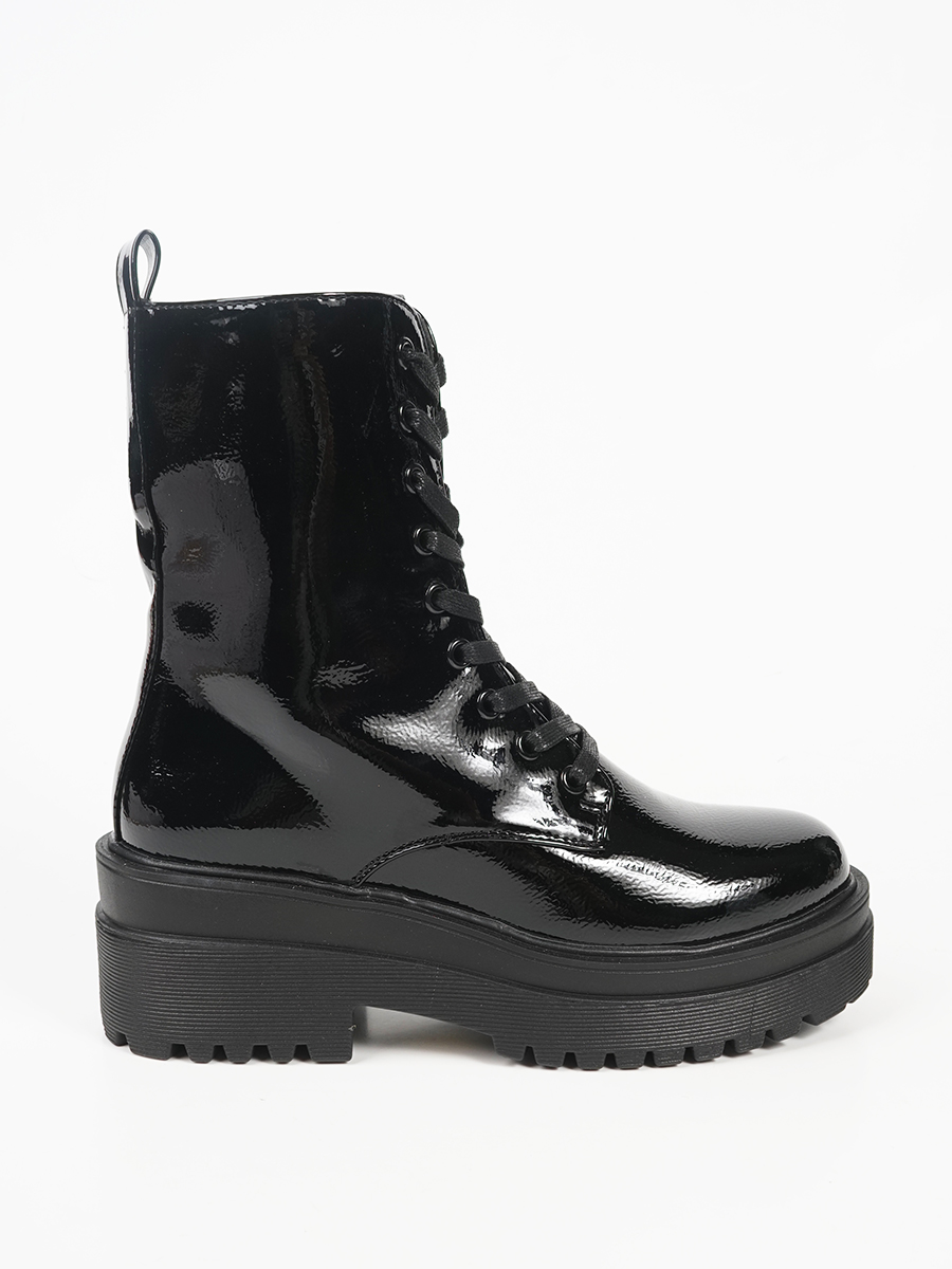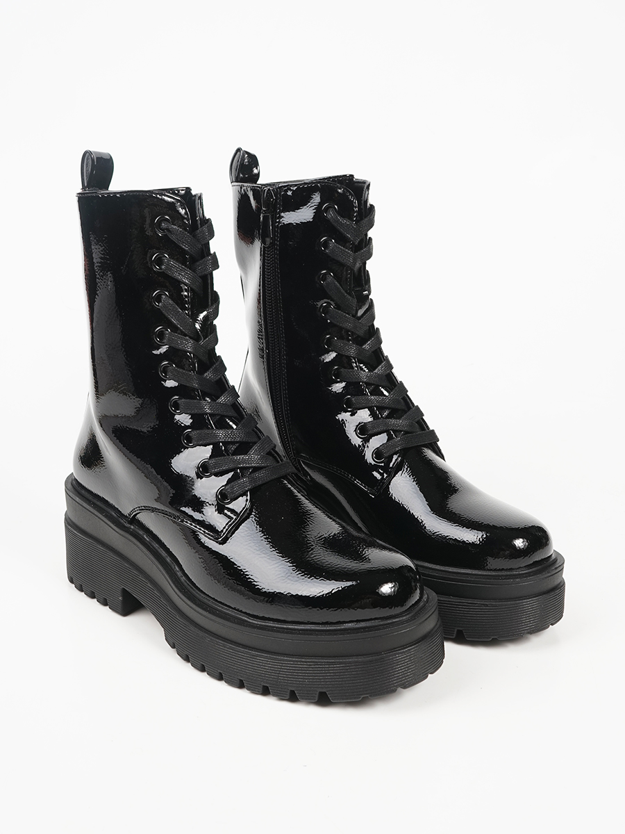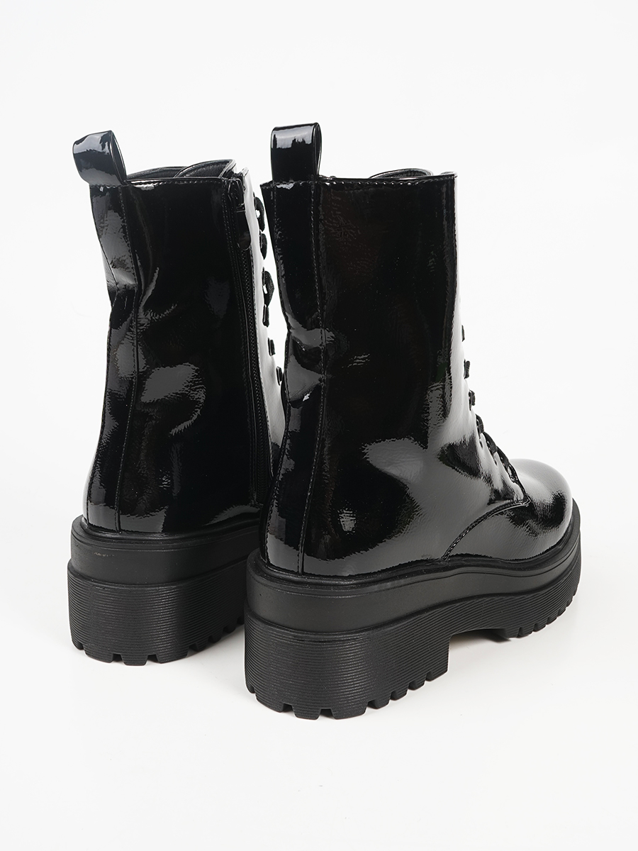 Γυναικείο μποτάκι δίσολο λουστρίνι με εσωτερικό φερμουάρ για εύκολη εφαρμογή.