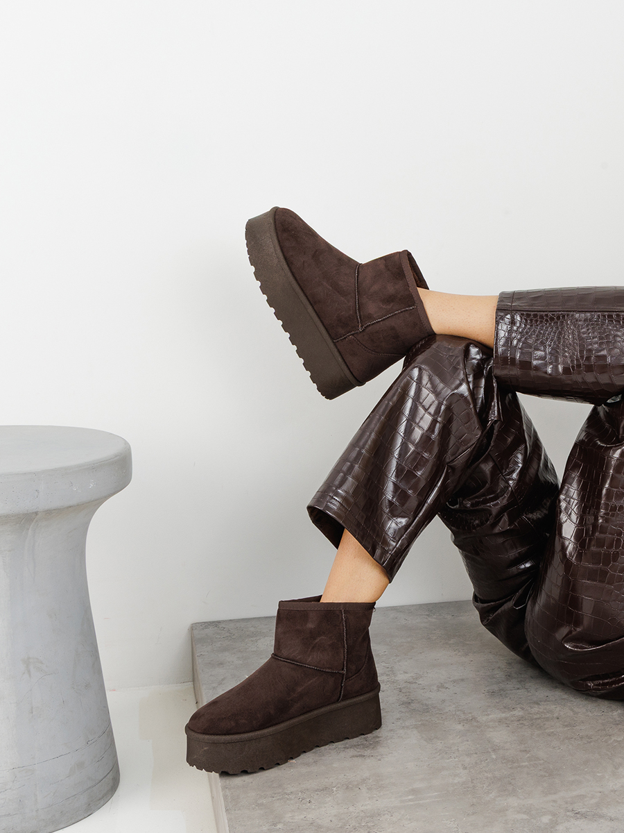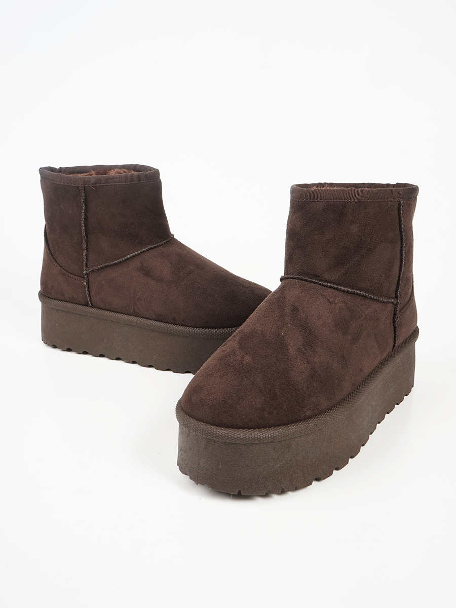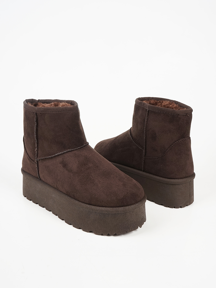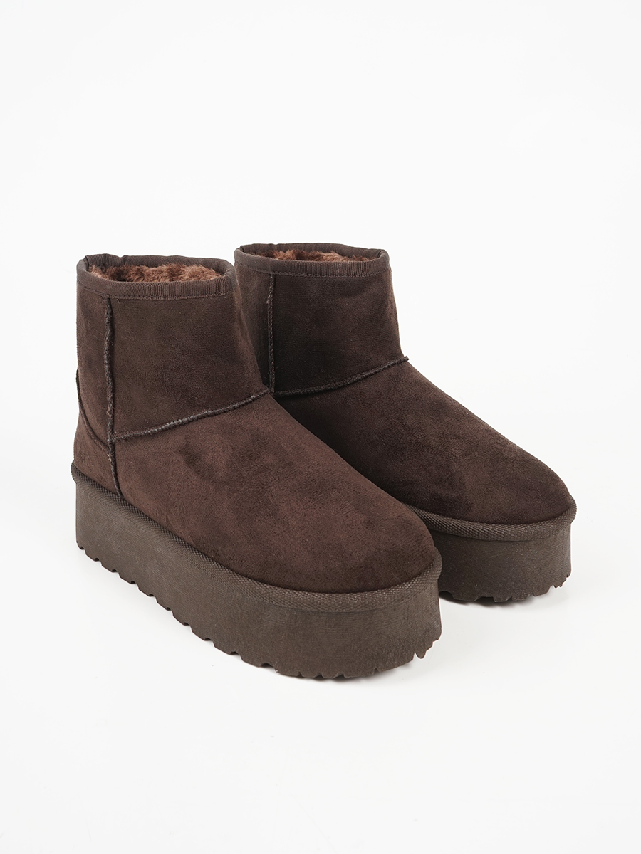 Γυναικείο suede μποτάκι με ψηλή σόλα και εσωτερική επένδυση από γούνα.