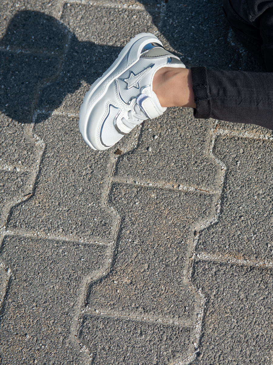 Παιδικό sneaker με μεταλλική λεπτομέρεια και σχέδιο αστεράκι στο πλάι.Διαθέτει αυτοκόλλητο για εύκολη εφαρμογή.