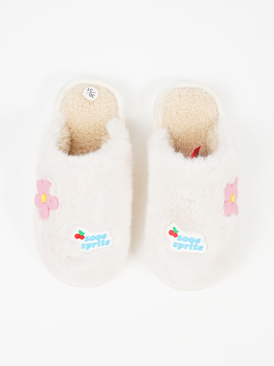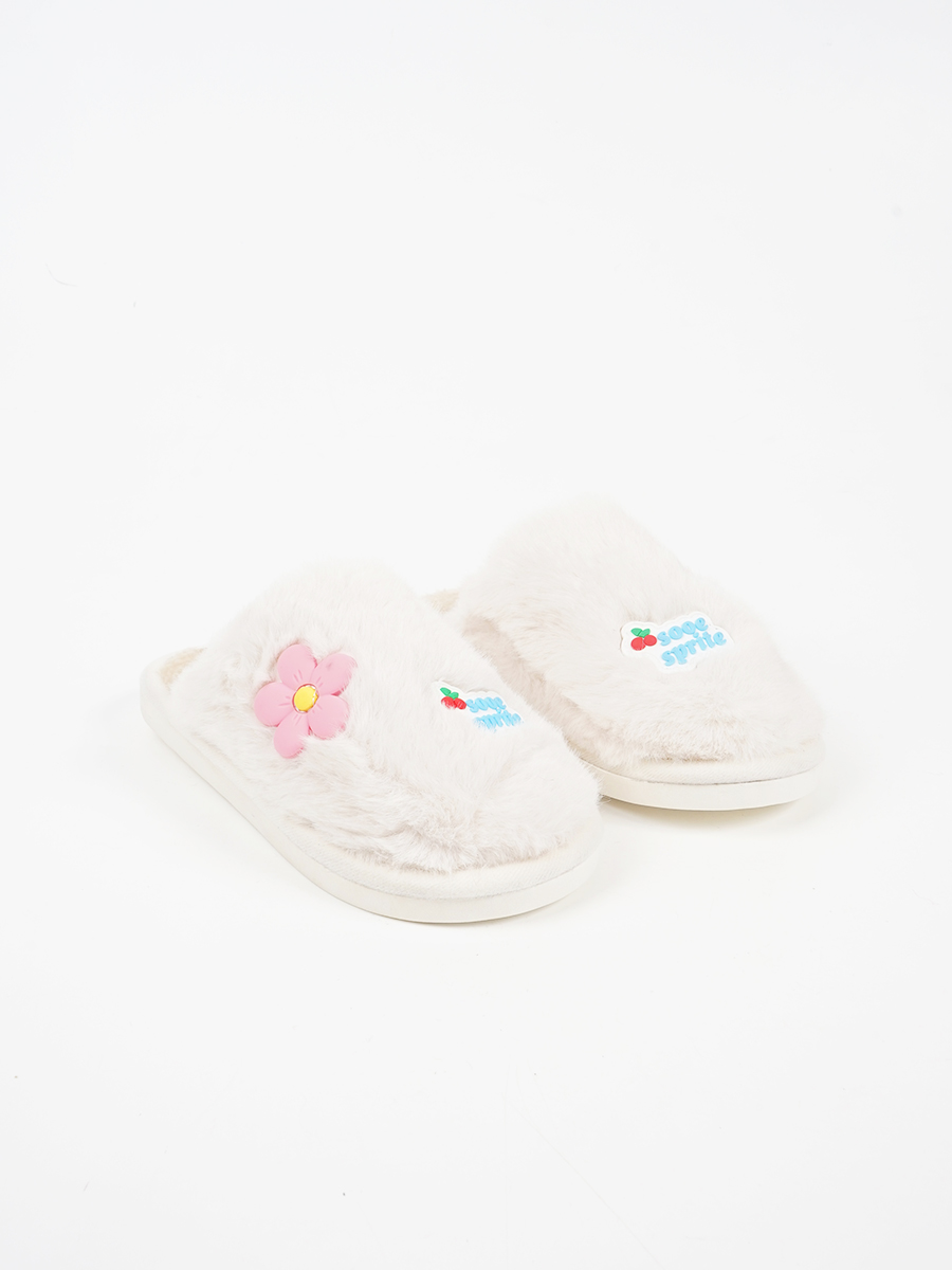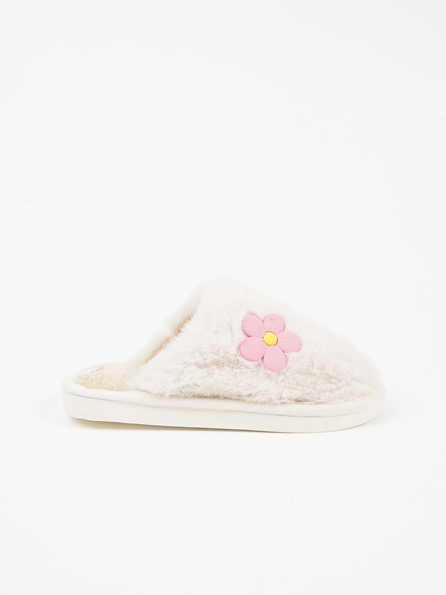 Παιδικές γούνινες παντόφλες σπιτιού με σχέδιο λουλούδι