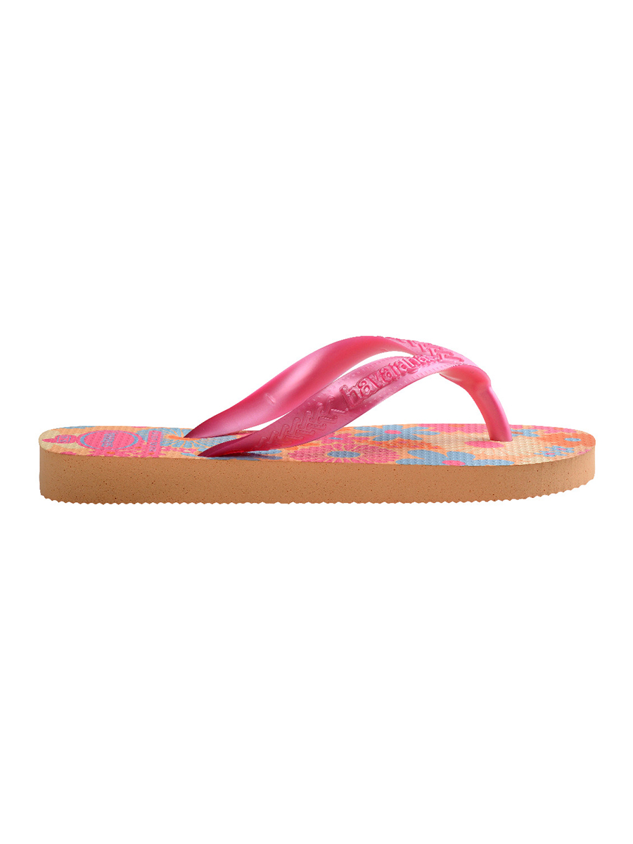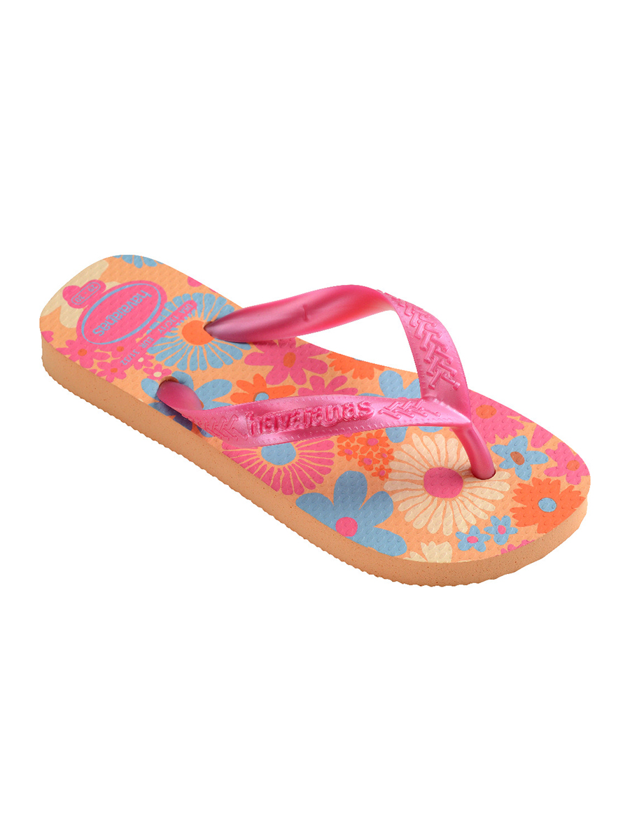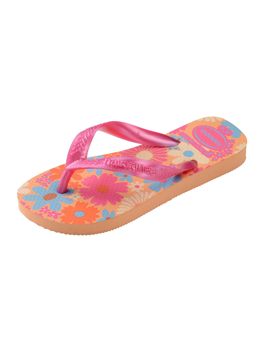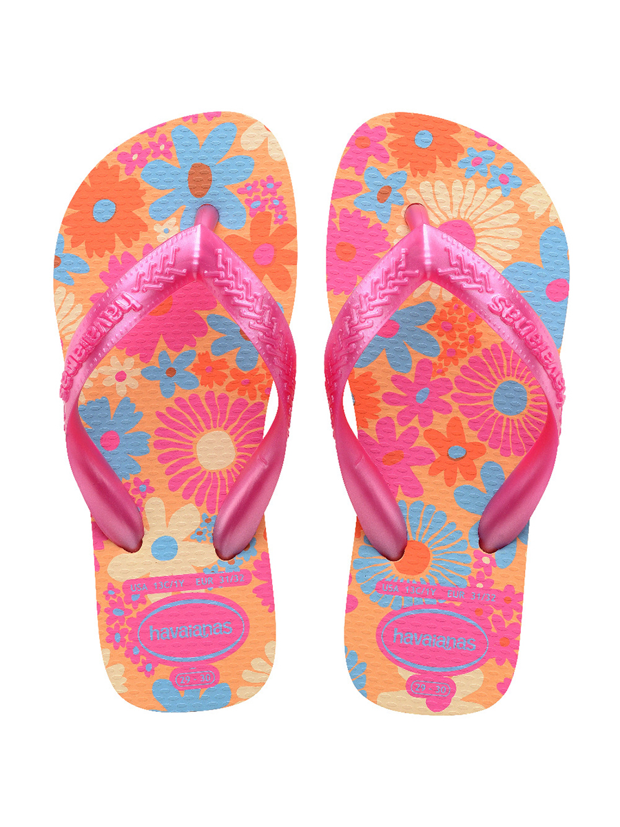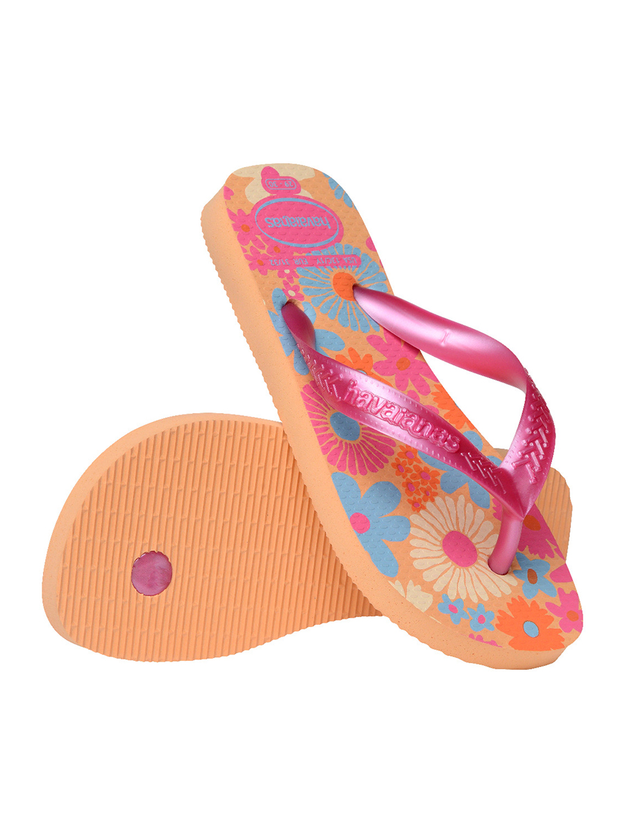 Παιδική/εφηβική σαγιονάρα Havaianas με ανάγλυφο το λογότυπο της εταιρείας στο λουράκι και σχέδια από λουλούδια στον πάτο.Διαθέτει εξωτερική σόλα με αυλακώσεις για αποτελεσματική πρόσφυση.Άνετη,ανθεκτική,ελαφριά, με αντοχή στις υψηλές θερμοκρασίες και αδιάβροχη.