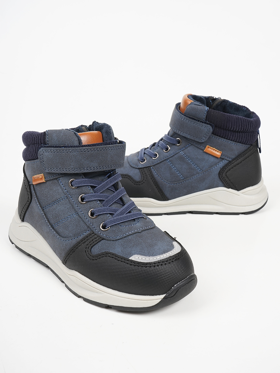 Παιδικά μποτάκια με αυτοκόλλητο skrats και εσωτερικό φερμουάρ για τέλεια και εύκολη εφαρμογή, καθώς και διακοσμητικά κορδόνια.