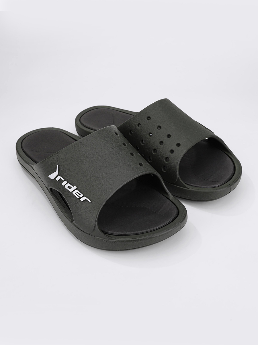 Ανδρική παντόφλα από την εταιρεία Rider με μαλακό εσωτερικό πάτο, ειδικά σχεδιασμένο ώστε να βοηθά στην μέγιστη απορρόφηση των κραδασμών.Αναπαυτική, ελαφριά και αδιαβροχη.Η αντιολισθητική σόλα της είναι ελαστική και εξασφαλίζει άνετο και σταθερό περπάτημα. Κατασκευασμένη από vegan,υποαλλεργικό,άοσμο,100% ανακυκλώσιμο υλικό.