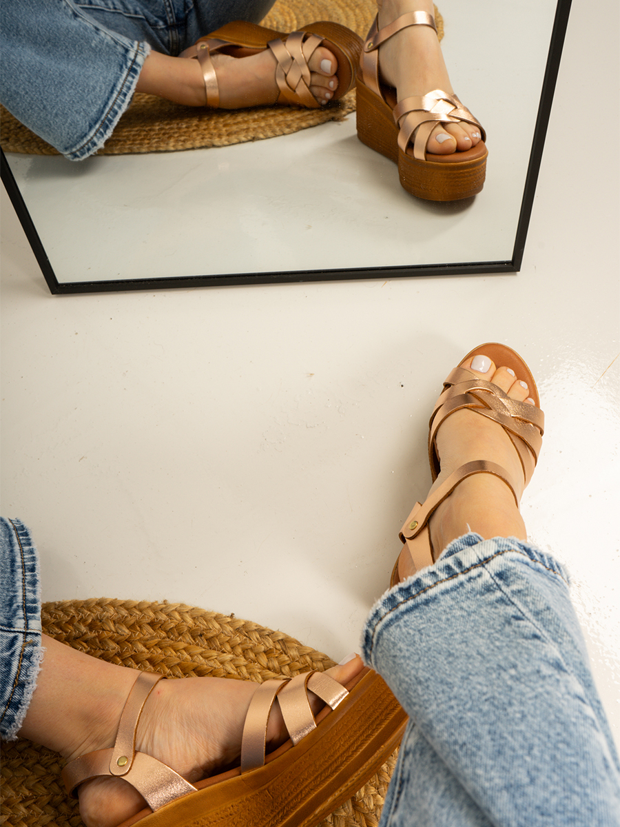 Γυναικεία πλατφόρμα,ελληνικής κατασκευής,με φάσα από λουράκια.