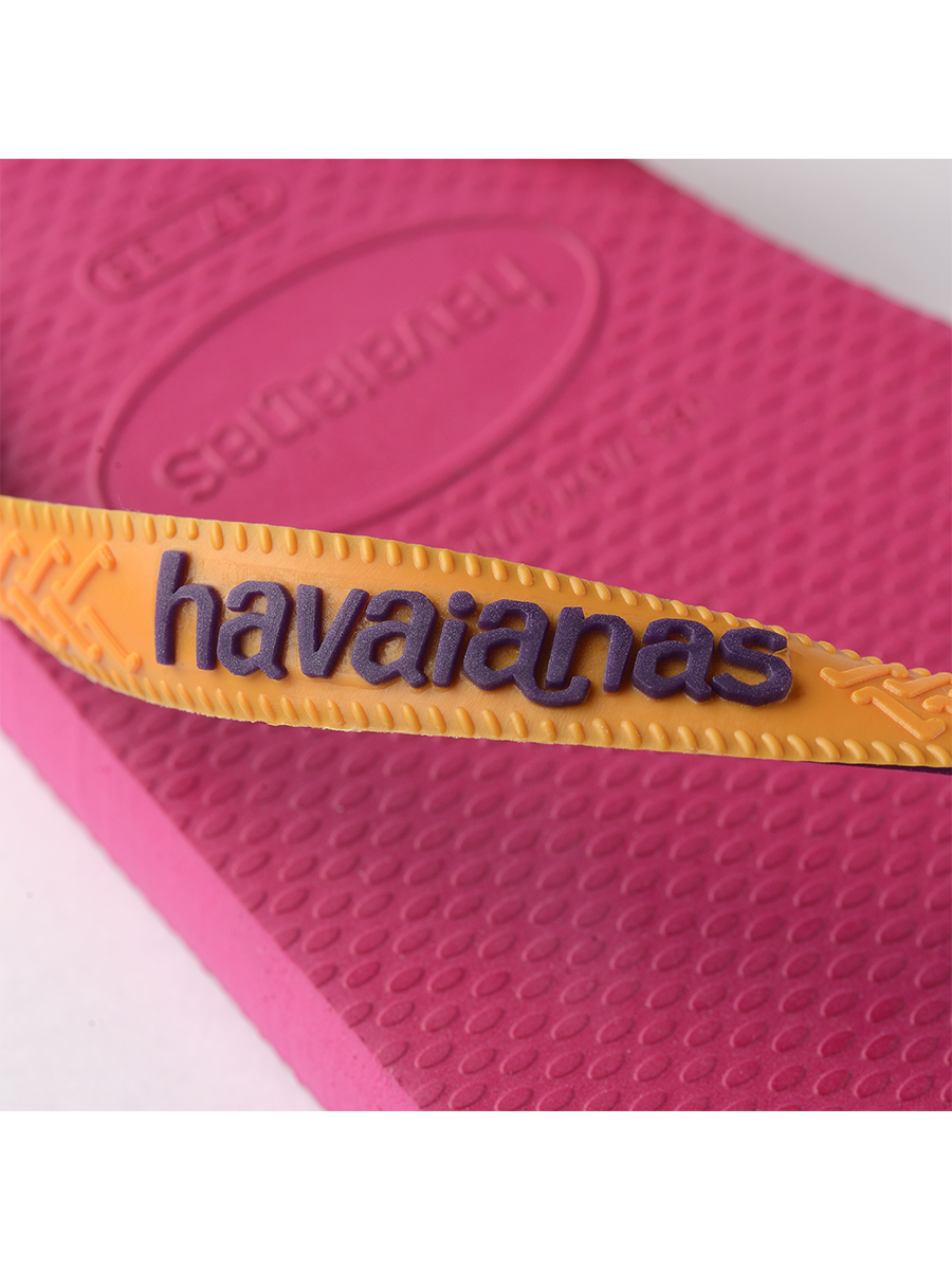 Unisex σαγιονάρα Havaianas με δίχρωμο λουράκι,στο οποίο υπάρχει ανάγλυφο το λογότυπο της εταιρείας.Διαθέτει εξωτερική σόλα με αυλακώσεις για αποτελεσματική πρόσφυση.Άνετη,ανθεκτική,ελαφριά, με αντοχή στις υψηλές θερμοκρασίες και αδιάβροχη.