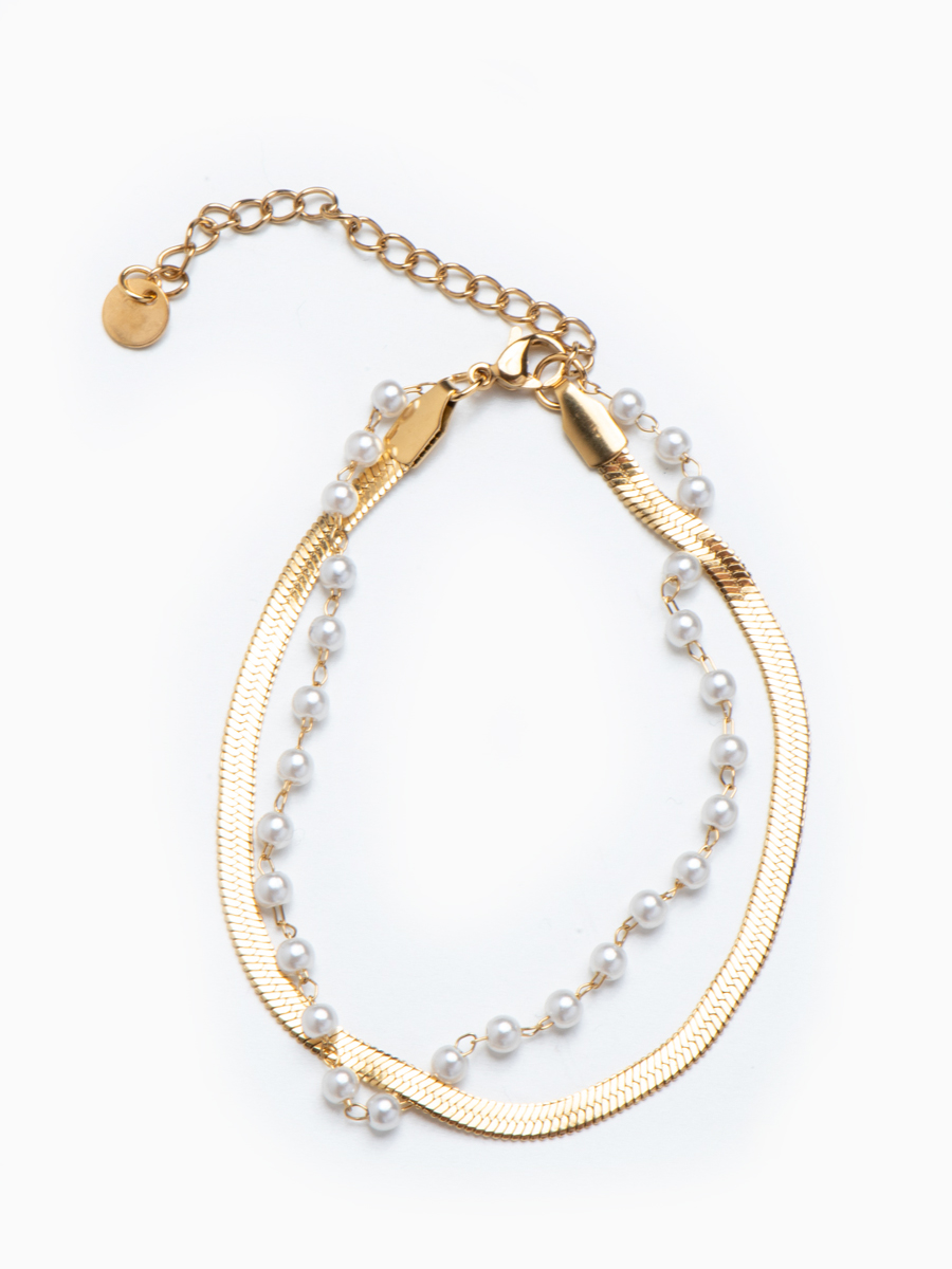 Γυναικείο βραχιόλι snake με διπλή αλυσίδα και πέρλα.Κατασκευασμένο από 100% ανοξείδωτο ατσάλι.